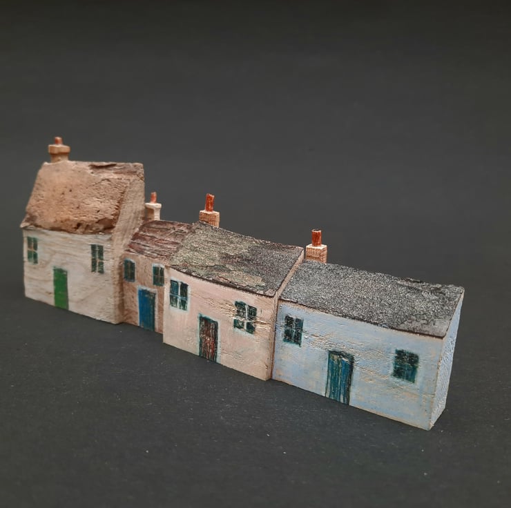 14 cms row of cottages in sycamore, ash and elm with bark roofs.