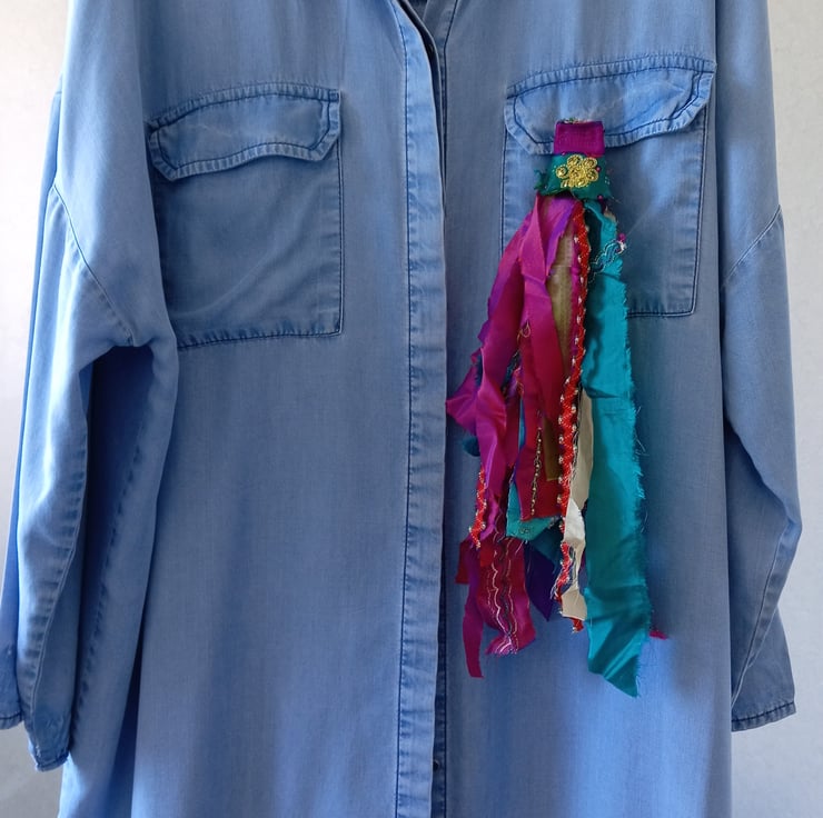 Colourful and vibrant tassel brooch. Very versatile, use it on bags, clothing and coats. Also great on curtains or on fabric headboards, giving a splash of colour.