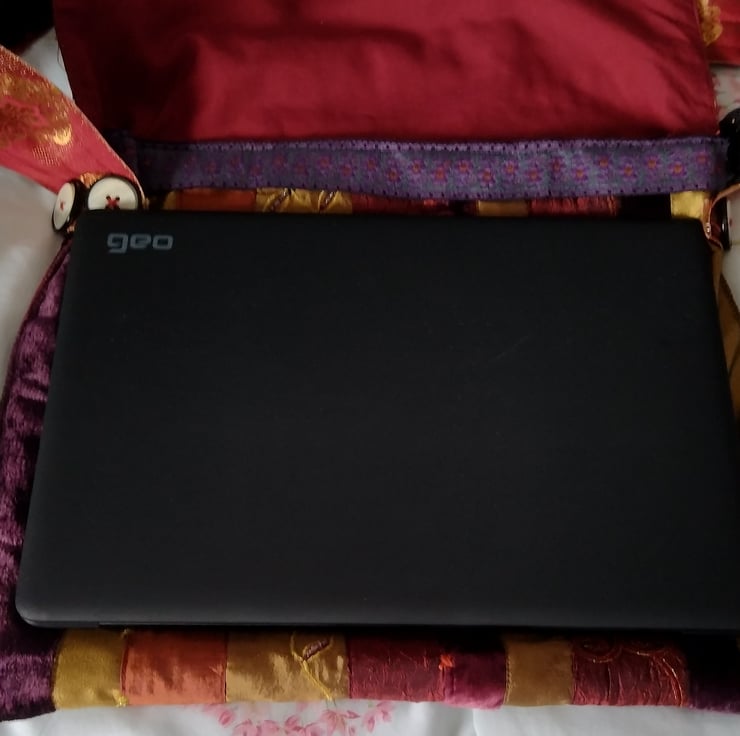 It's big enough to hold a small laptop but it isn't padded, just 2 laters of fabric. It has a long strap so it can be worn across the body.