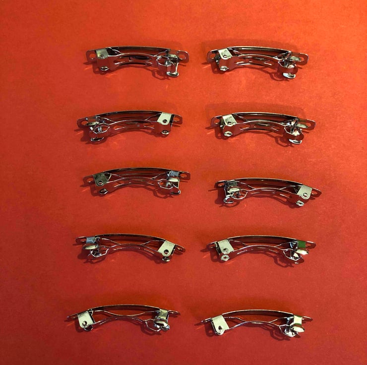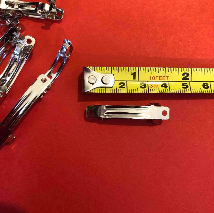 These blank metal hair barrettes measure 40mm in length and 4mm wide, and can be mounted with your own designs and decorations. In the past, I have used felt and polymer clay to create striking hair accessories.