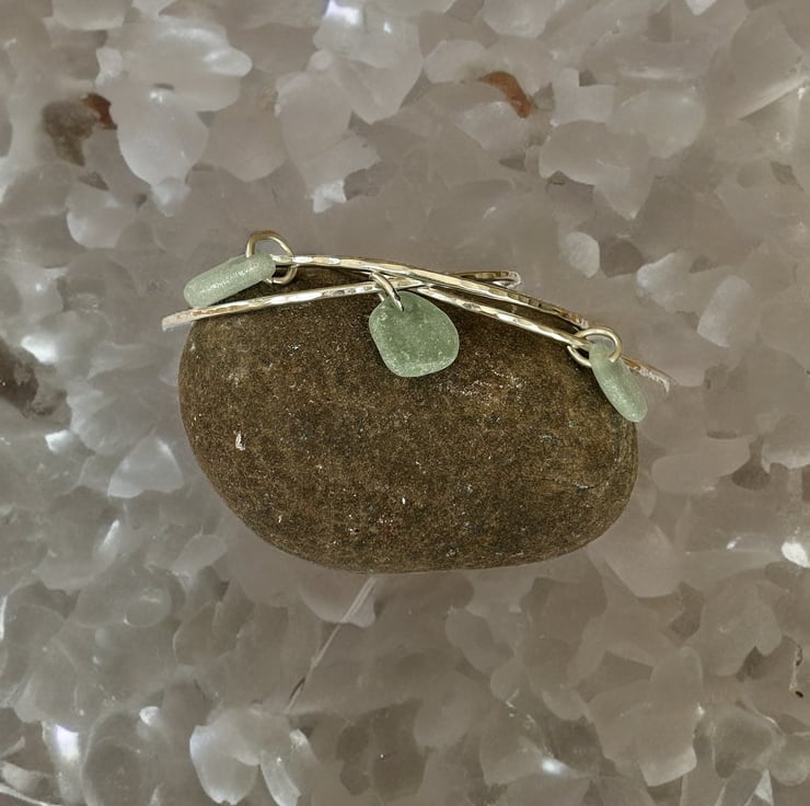 Always inspired to make pieces featuring seagrass as I am inspired by living on the coast.. I also love Russian rings so I thought I would make a Russian bangle and adding sea glass as charms.