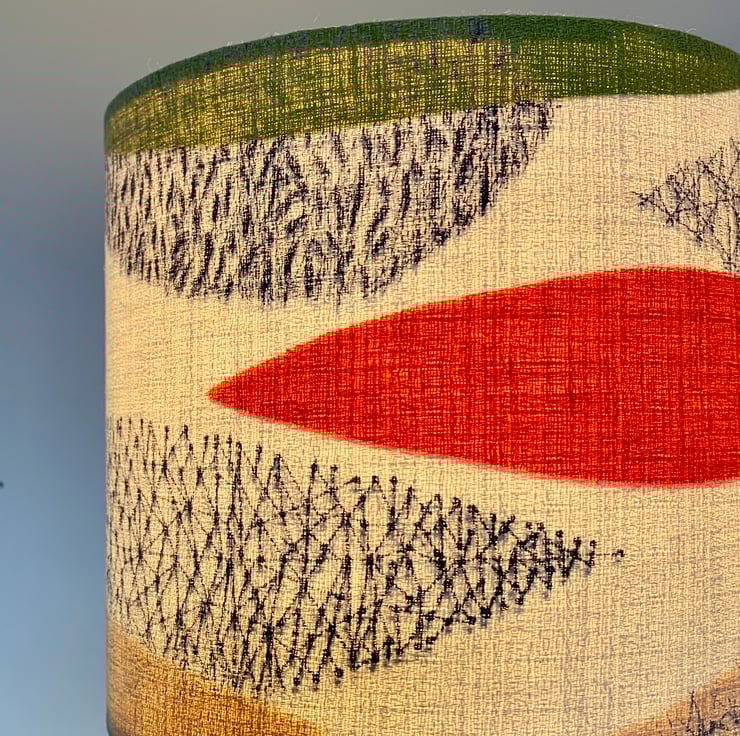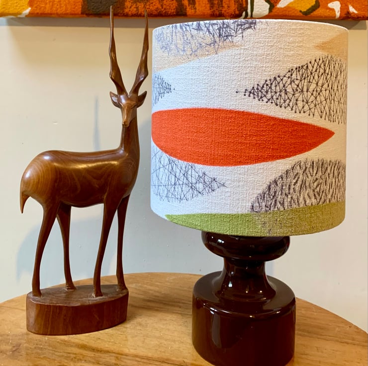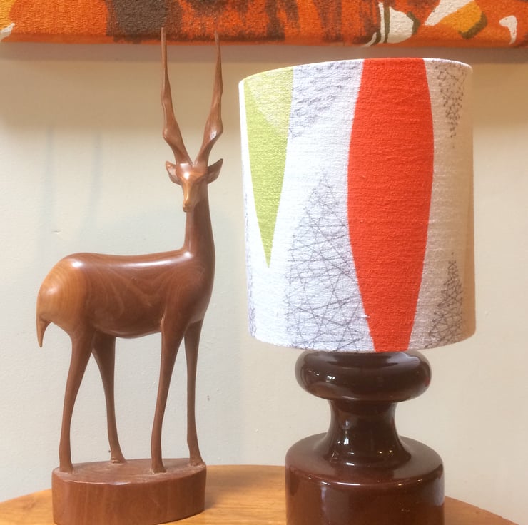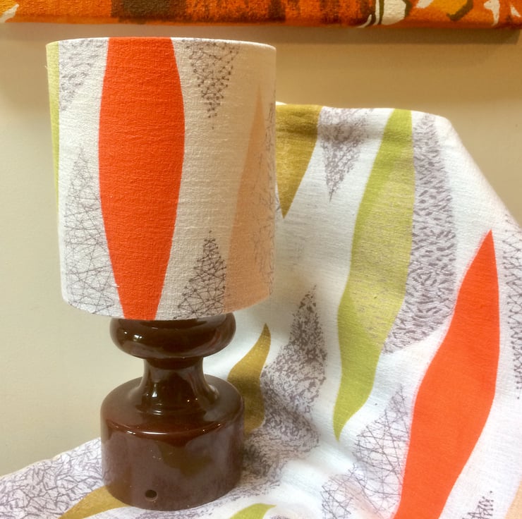 Iconic Mid Century Retro Leaf lampshade in Orange Green 50s 60s barkcloth fabric - A smart feature in either a modern or retro setting.