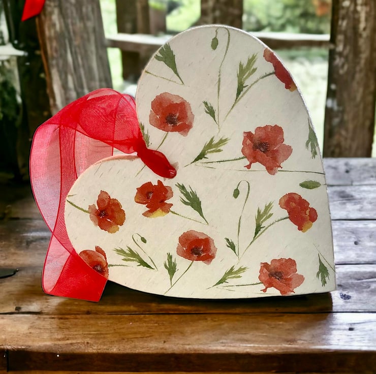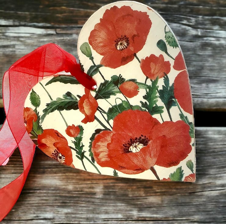 X4 hanging Poppy wooden hearts at £7.95 each plus postage.