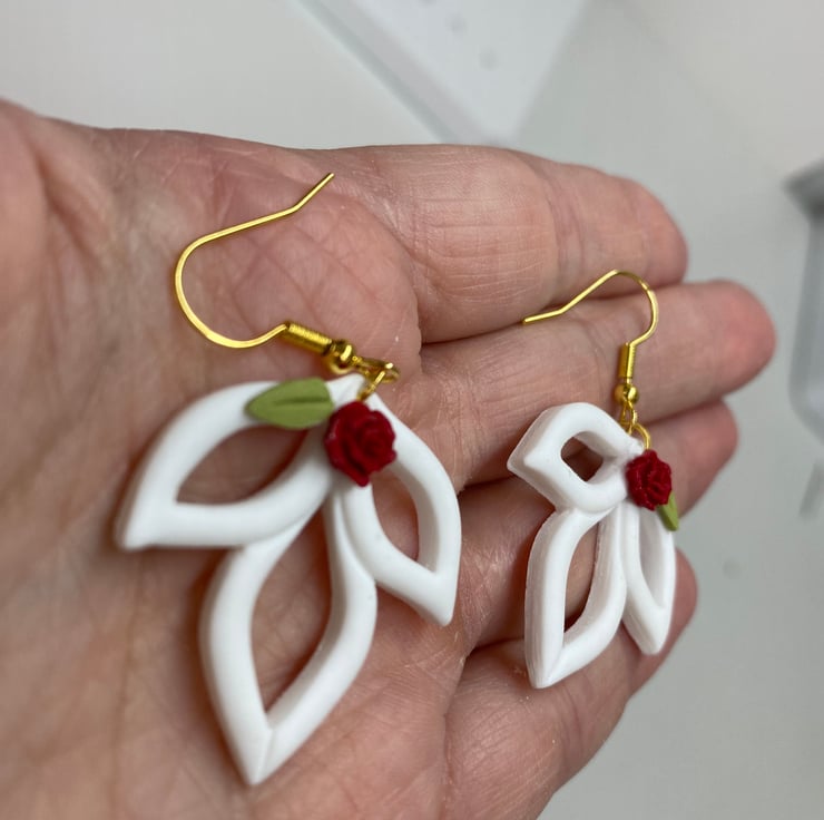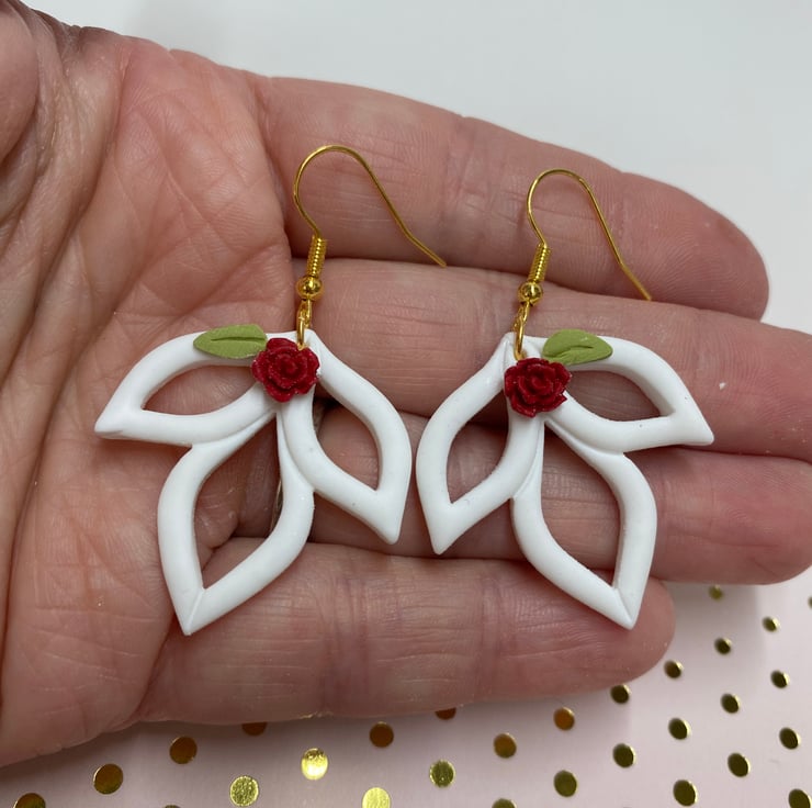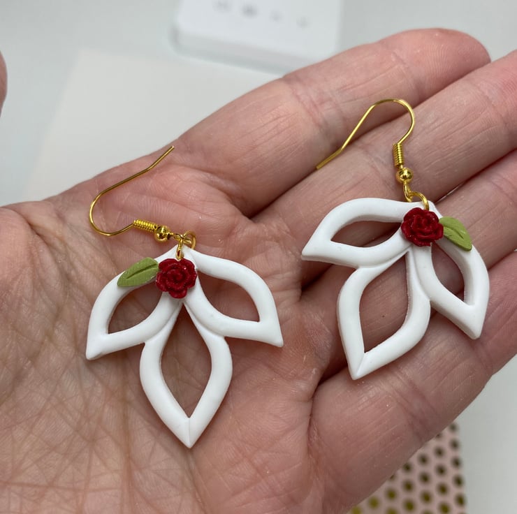 These cute earrings are handmade from high-quality Fimo professional polymer clay. The bright white and deep red compliment each other perfectly and ooze those boho vibes! They are lightweight and durable, and with their hypoallergenic earring hooks, they are comfortable for all day wear, even for the most sensitive of ears.