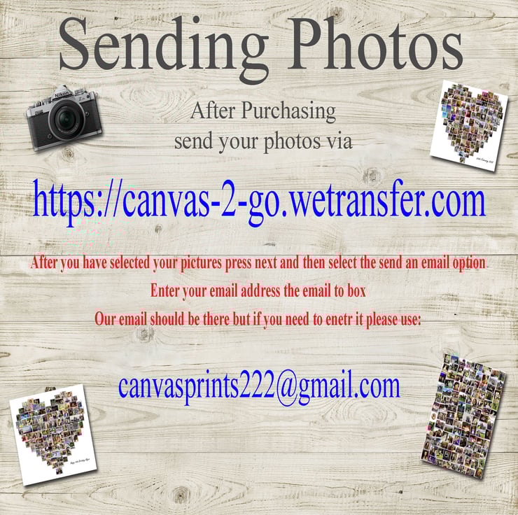Once we have received your order we will email you a link and instructions to upload all your pictures or see the example pictures in this listing for details on uploading