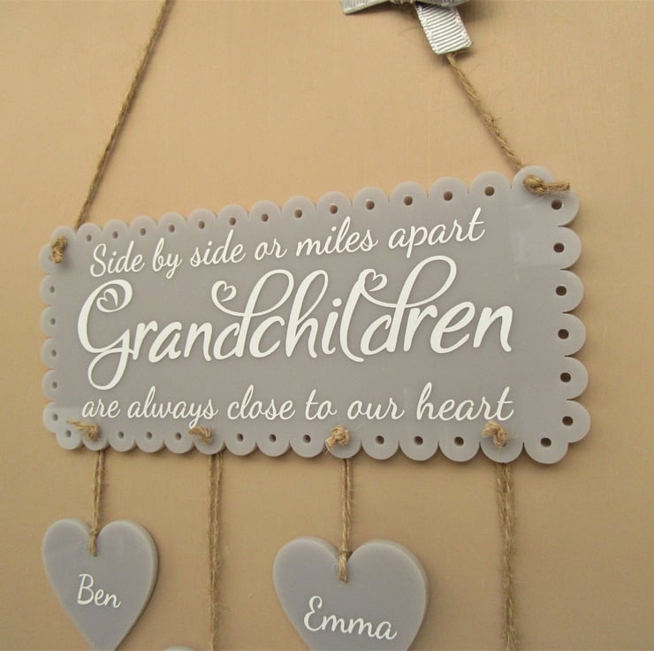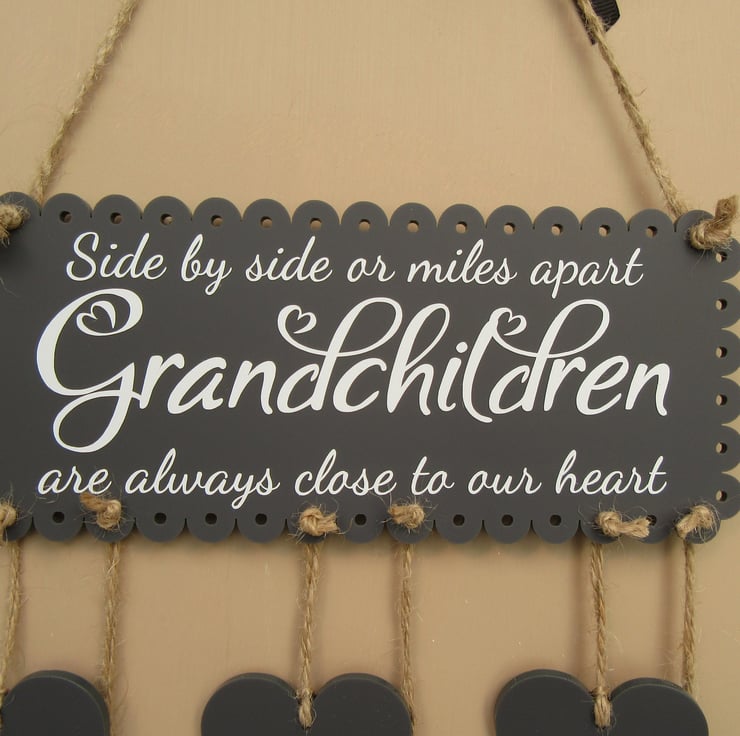 Quote reads: Side by side or miles apart grandchildren are always close to our heart