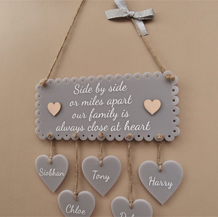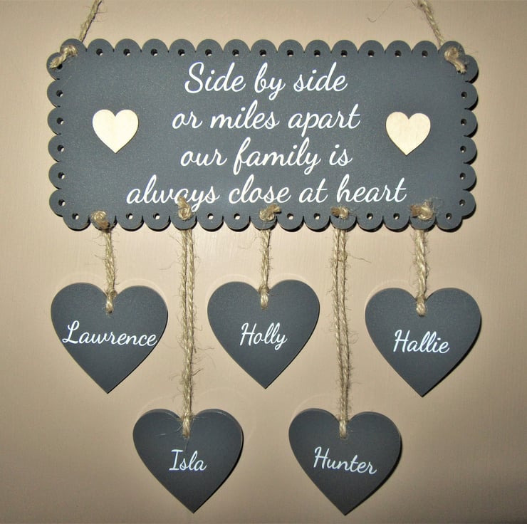 Quote reads: "Side by side or miles apart our family is always close at heart"
