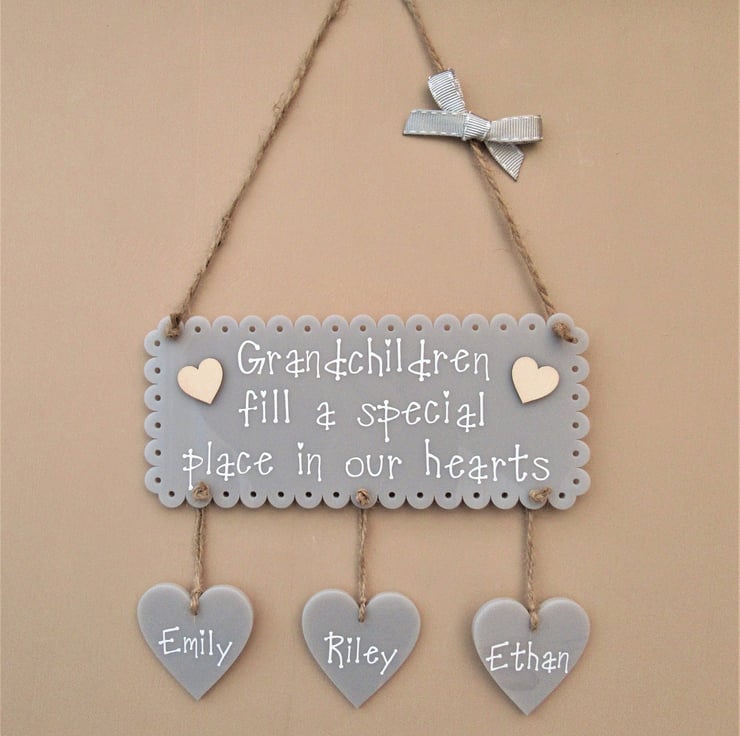 Quote reads: Grandchildren fill a special place in our hearts. If you would like the writing in a different font or a different quote please purchase a custom plaque which can be found in the main shop.