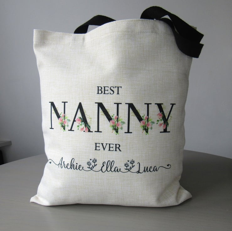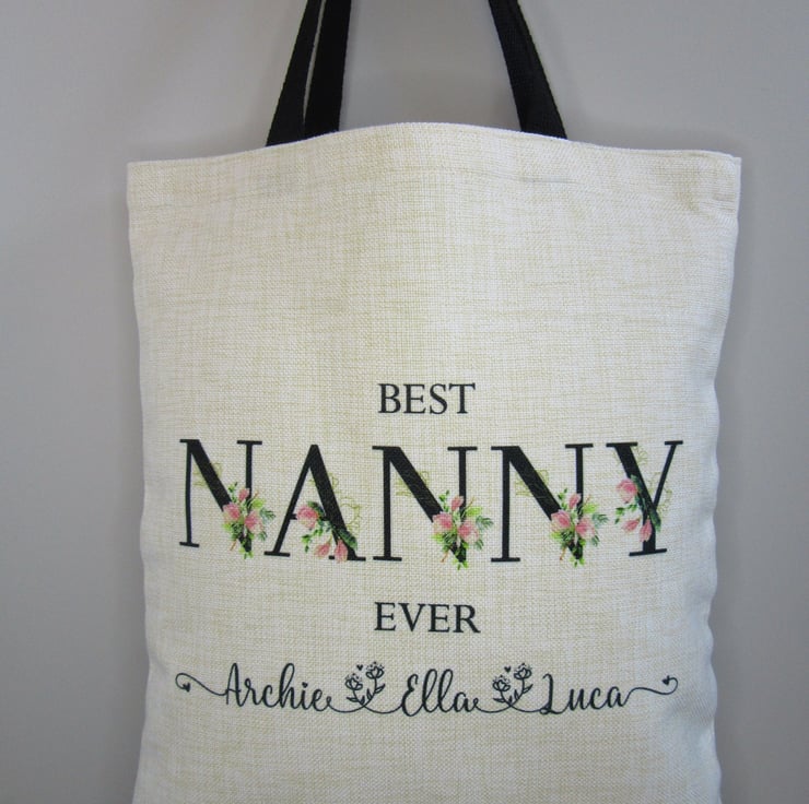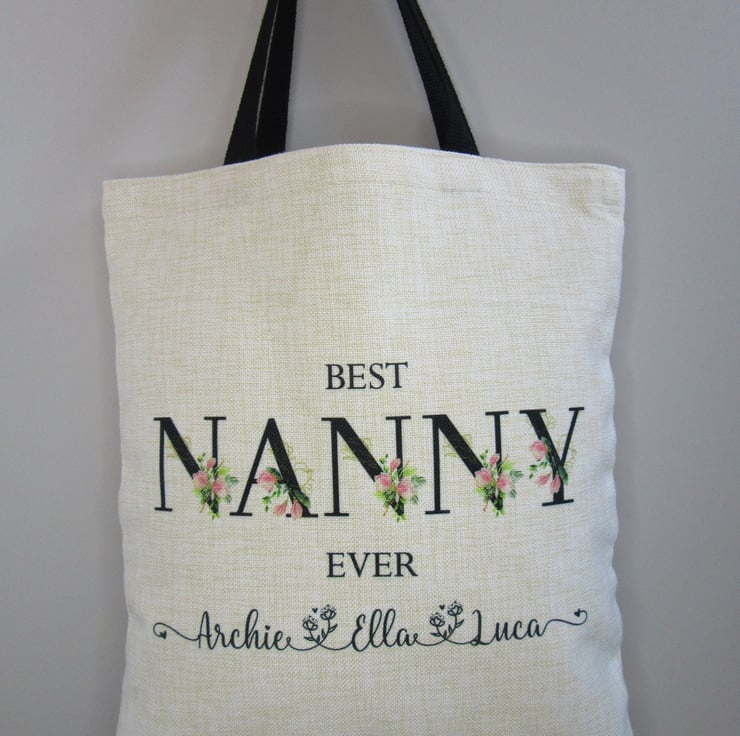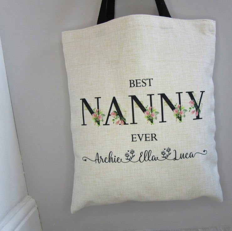 Personalised Best Nanny Ever Linen Tote Bag, Shopping Bag, Premium High Quality