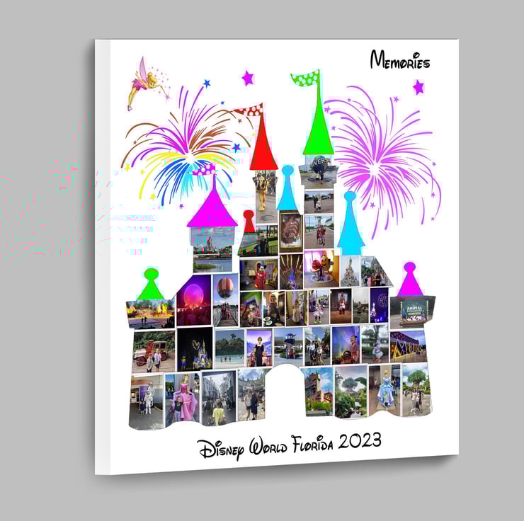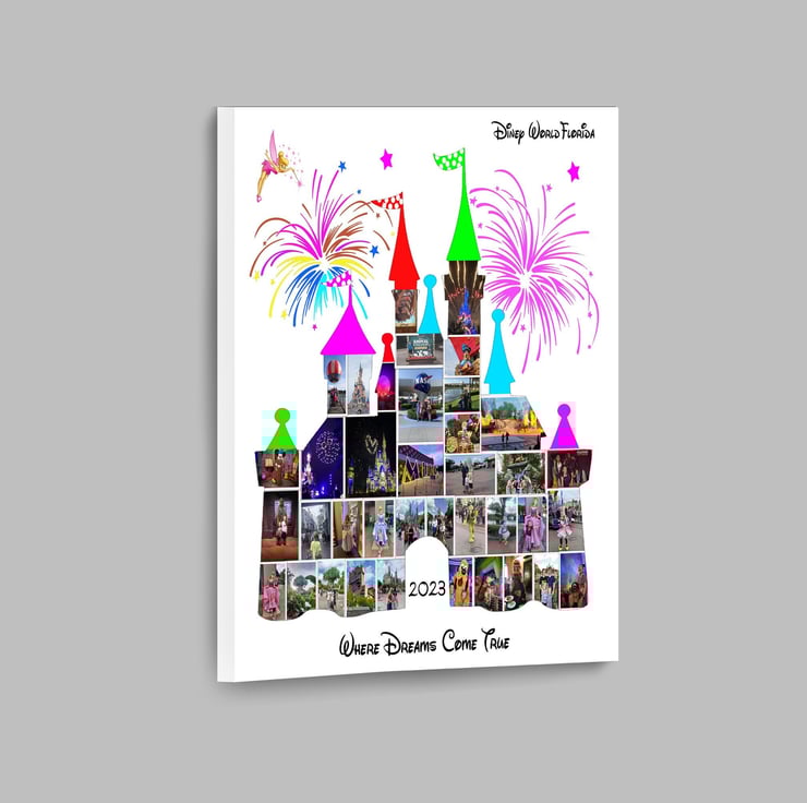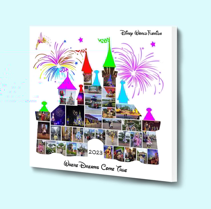 Fantastic personalised Disney Cinderella's Castle photo collage canvas print.