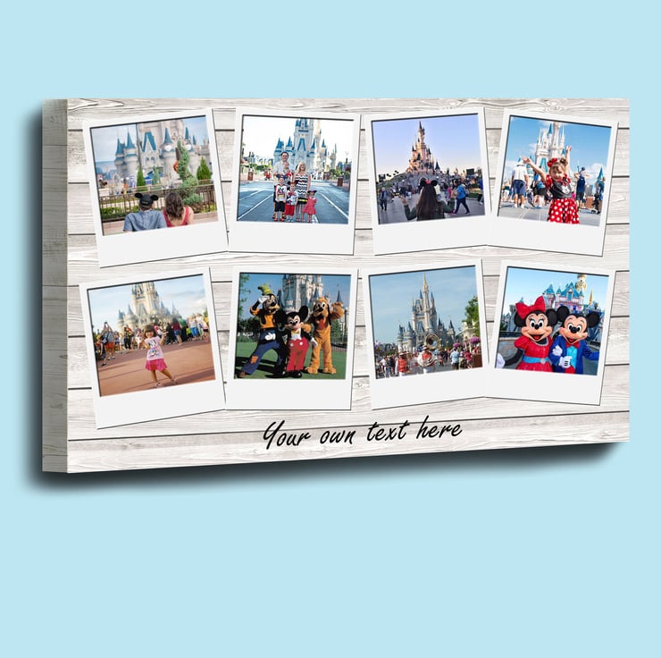 Send us 6 , 8 or 12 of your own pictures (depending on frame selection) and we will add them to this Polaroid style collage framed on an 18mm deep canvas frame ready to hang on your wall