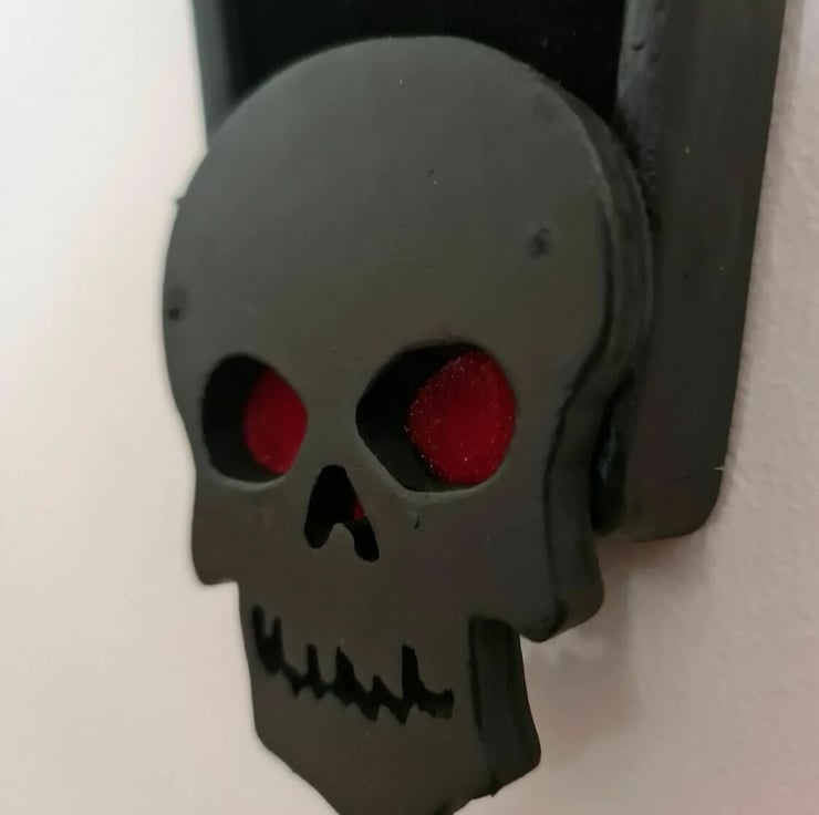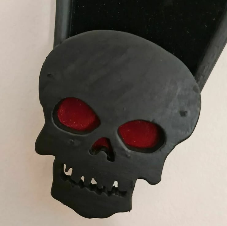 Handmade wooden Skull featured at the bottom, which also acts as a storage compartment for the backs of the pins.