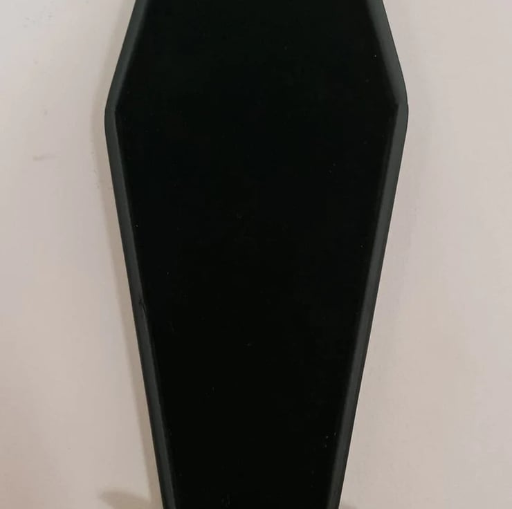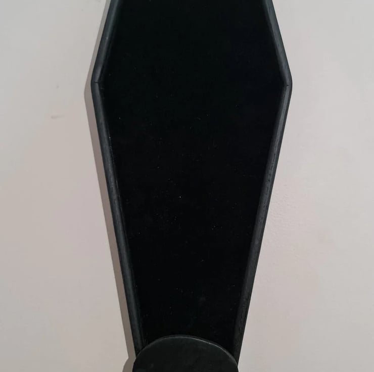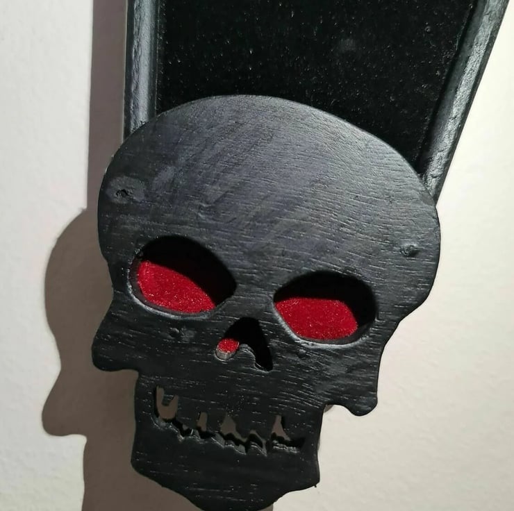 Gembo-Tiques very own handmade Coffin Pin Board, with Skull pocket.