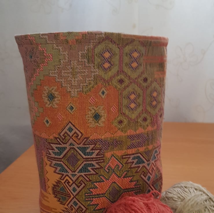 I have repurposed some cushion covers to make this handy little "basket" in lovely warm tones.