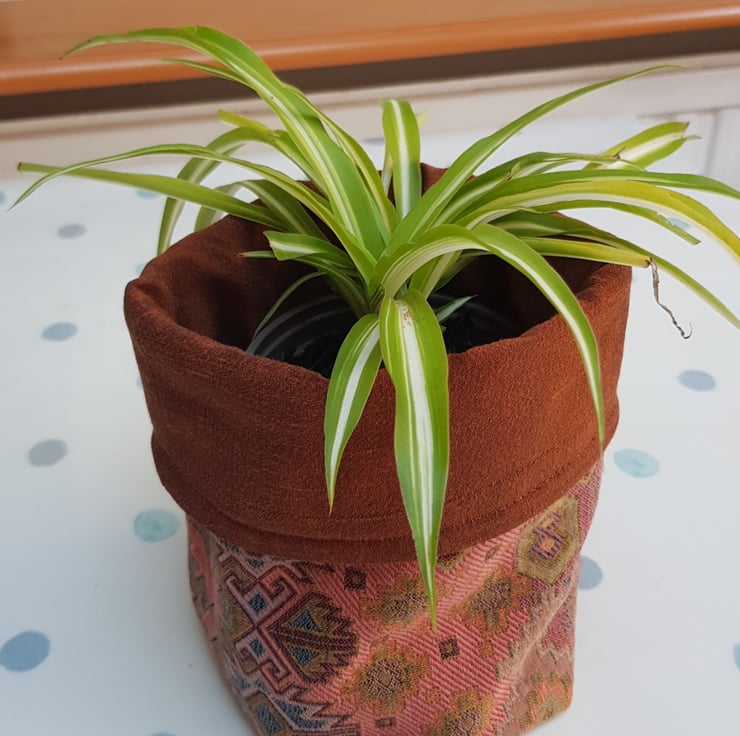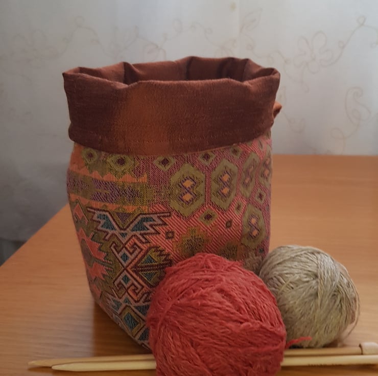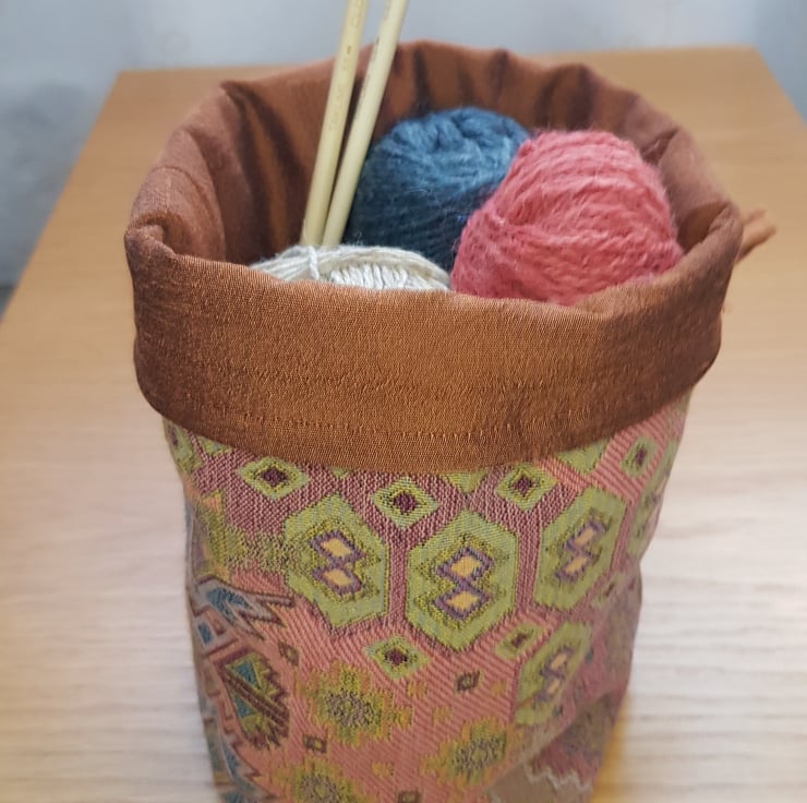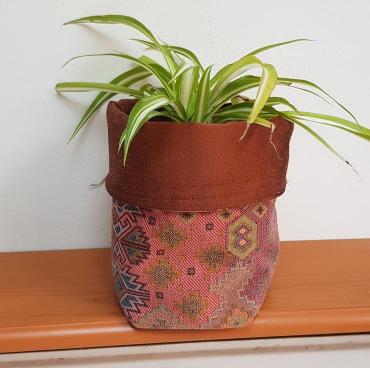 Ideal as a small project bag, plant holder (pop your plant in a non porous bag/container or put a saucer under to protect the fabric), or as a receptacle to tidy up bits and bobs.