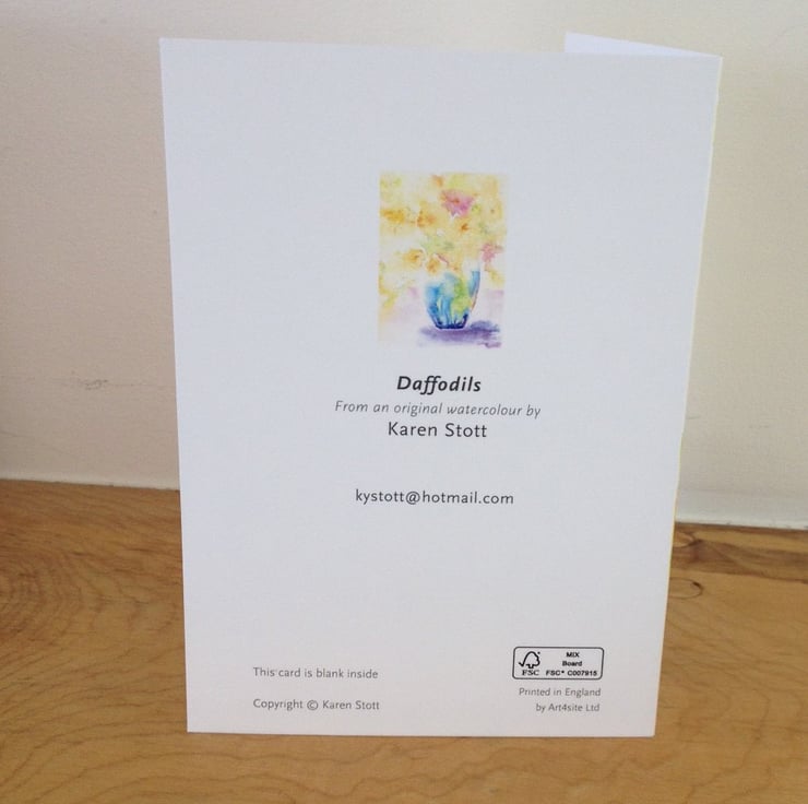 Daffodils greeting card with envelope and protective acetate. Size is A6 (148 x 105 mm).