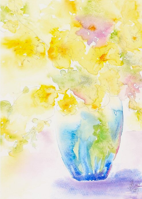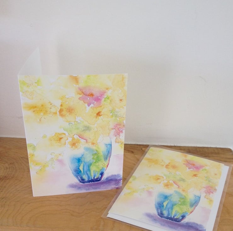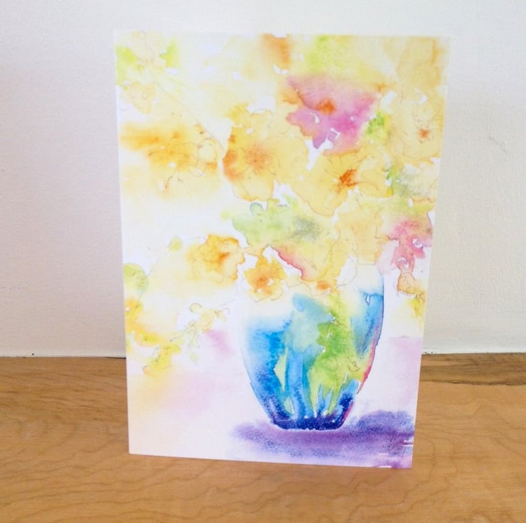This card was printed from one of my original watercolour paintings. It's quite bright & vibrant but still delicate and is one of my most favorite pieces of work. The card surface is slightly glossy and is of a good weight and quality.