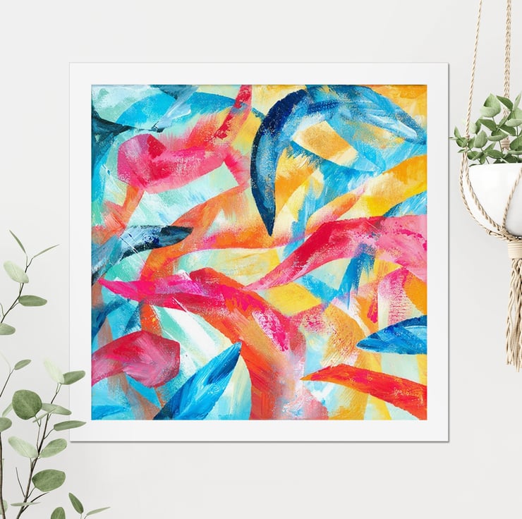 Adventure Colourful Abstract Square Art Print in Various Sizes, FREE UK Delivery
