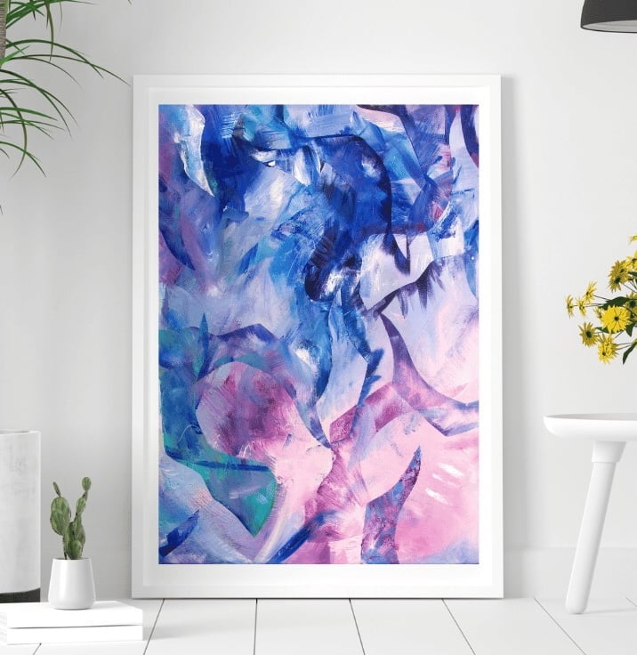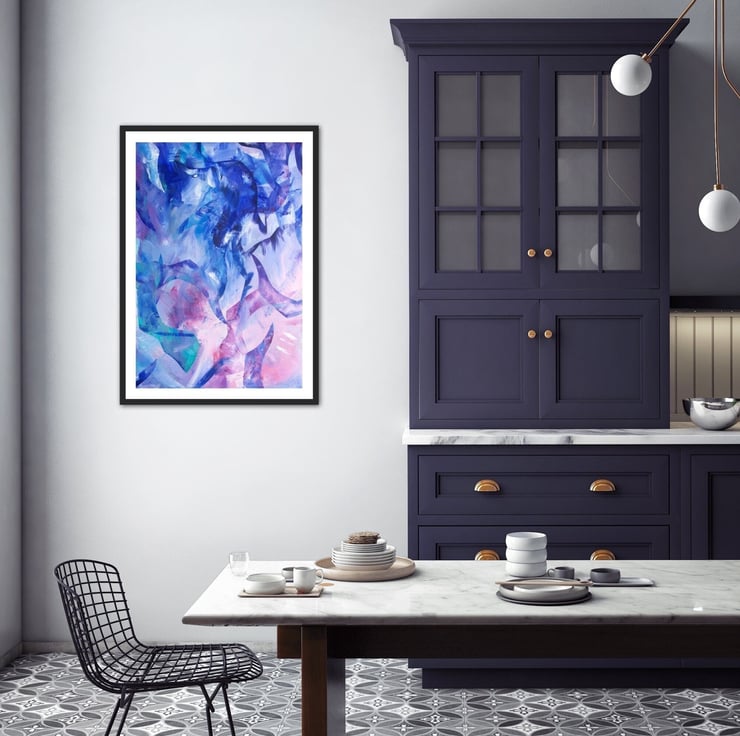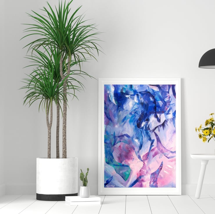 This modern art print looks great in a simple white or black frame and could be displayed in either portrait or landscape aspects.