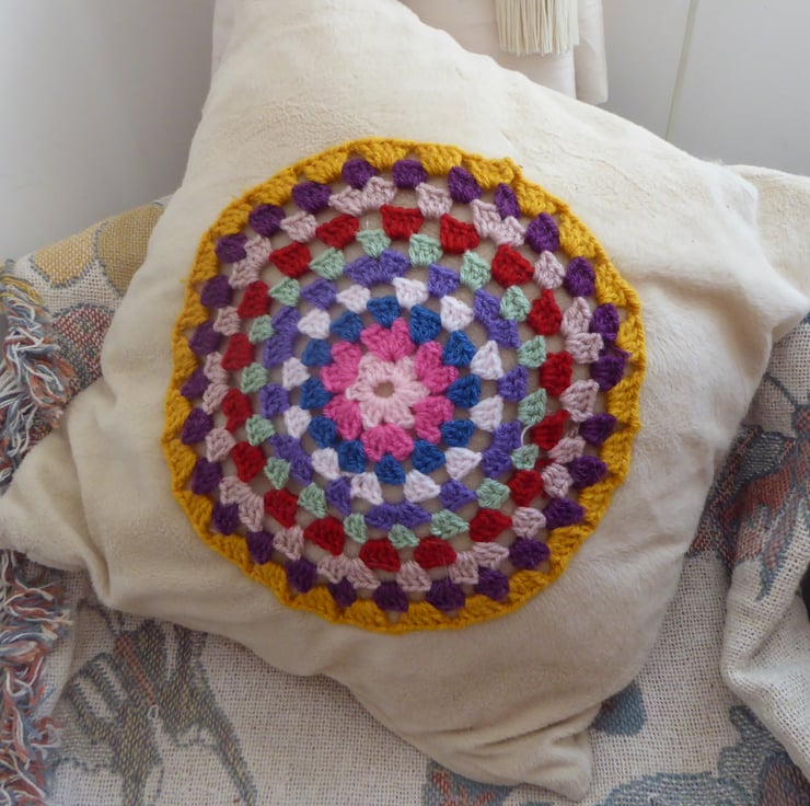 Alternatively you could use the Mandala as a round colourful appliqué shape stitched onto a bag or cushion cover see my pictures for ideas