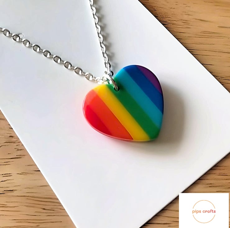 The rainbow pendant is on a silver plated 18 inch chain with clasp fastening.
