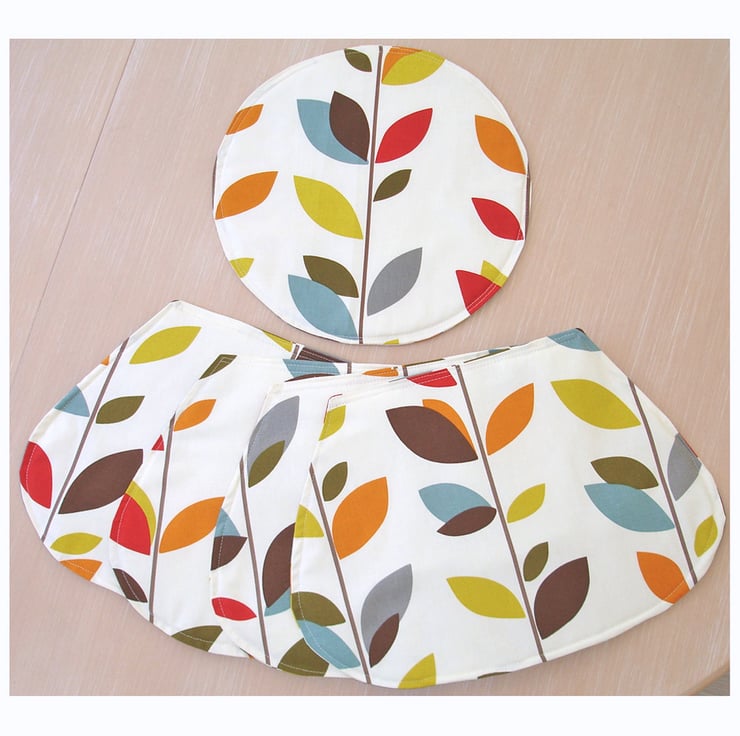 Stem Leaf Pattern - Red Orange Green Grey Blue Yellow and Brown - Same on both sides - useable both ways up!