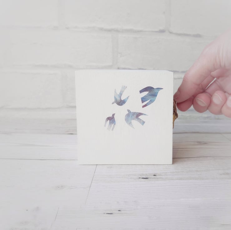 The design comes from original drawings which have been transformed into layers of laser cut wood, which I've painted and transferred and built up to form 3d layers. The scene is set into a wooden box which gives you a little hint on the front of what lies inside.