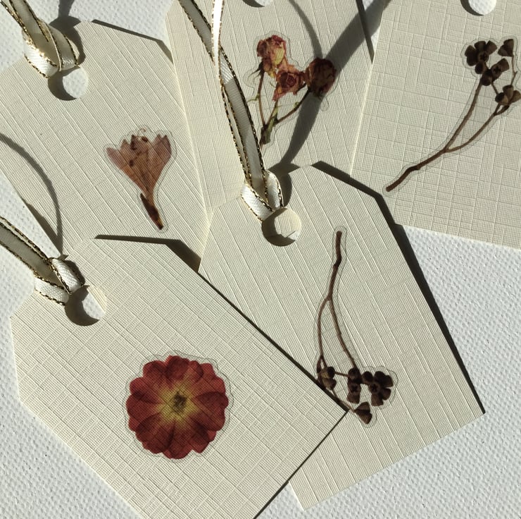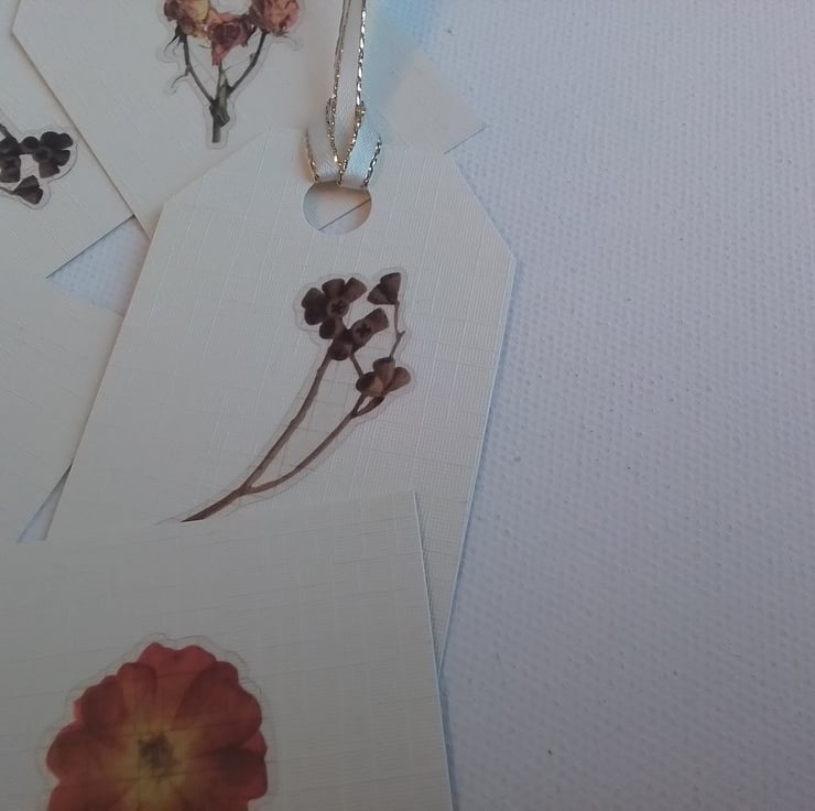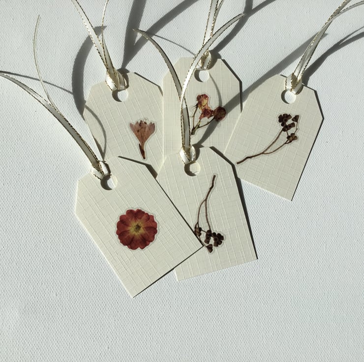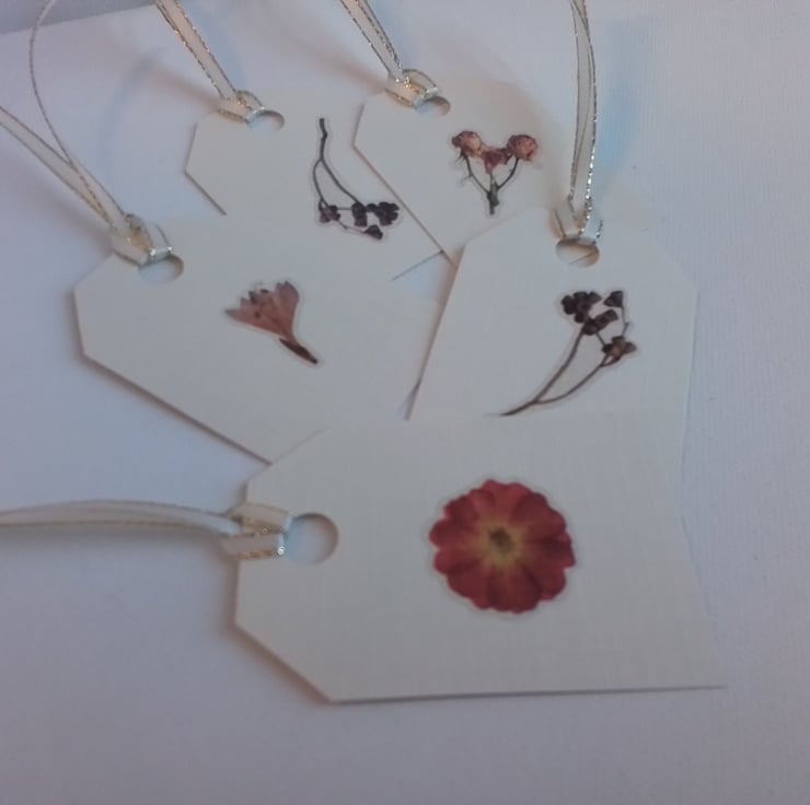 A pack of 5 pretty gift tags, each with a single flower.