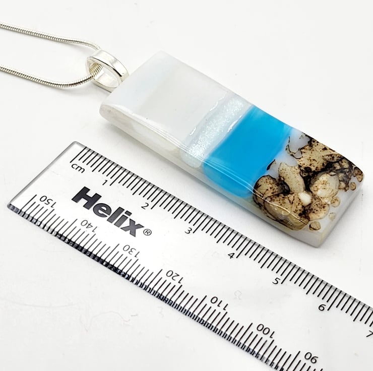 This beautiful fused glass pendant features a stunning beach scene that captures the essence of a relaxing day at the shore. The rich colors and intricate details of the design are created through the fusion of layers of glass, resulting in a unique and one-of-a-kind piece of wearable art. With its delicate chain and elegant style, this pendant is perfect for anyone who loves the beach and wants to carry a little piece of it with them wherever they go. It makes a great gift for a loved one or a beautiful addition to your own jewelry collection. Each pendant is handmade with care, ensuring that you are getting a high-quality piece that will last for years to come.