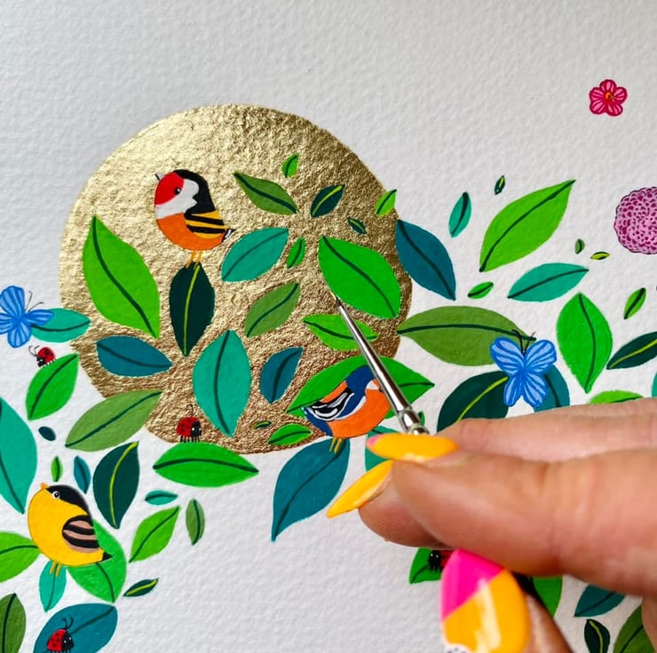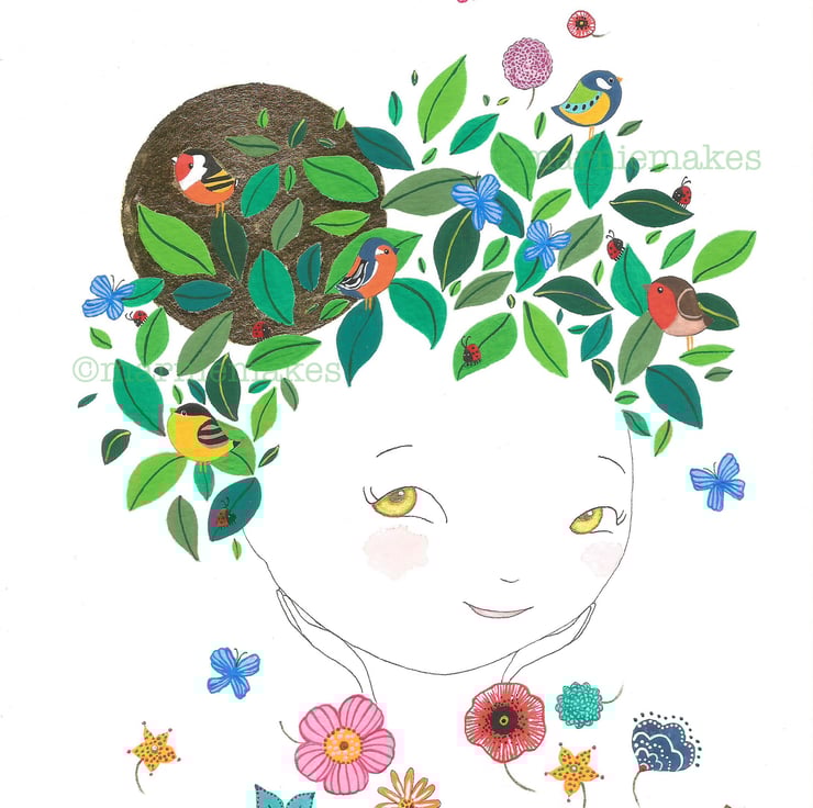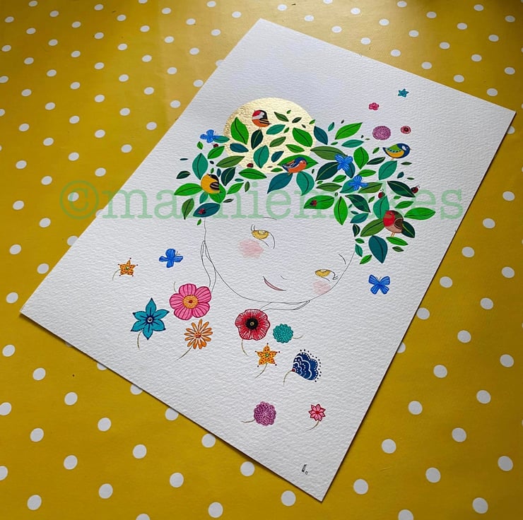 Summer - Giclee print taken from my original illustration of the same name, printed on Fujifilm Fine Art Etch Paper 300gsm, measuring 21x29.7 cm (A4). Sadly scanners don't pick up gold very well, and there is a huge gold leaf aspect on the original images so each print is lovingly hand-finished with gold ink (please see listing photographs)