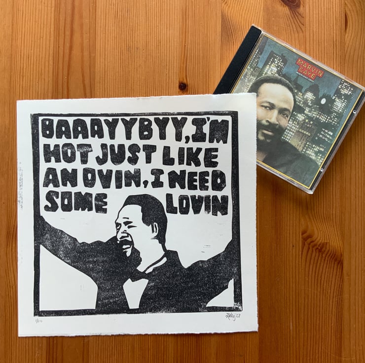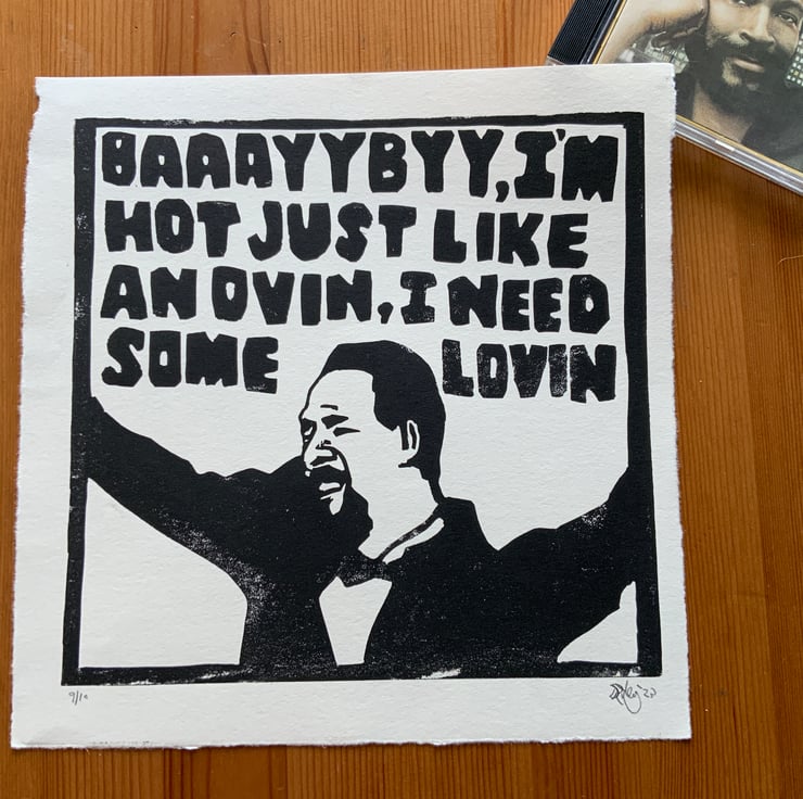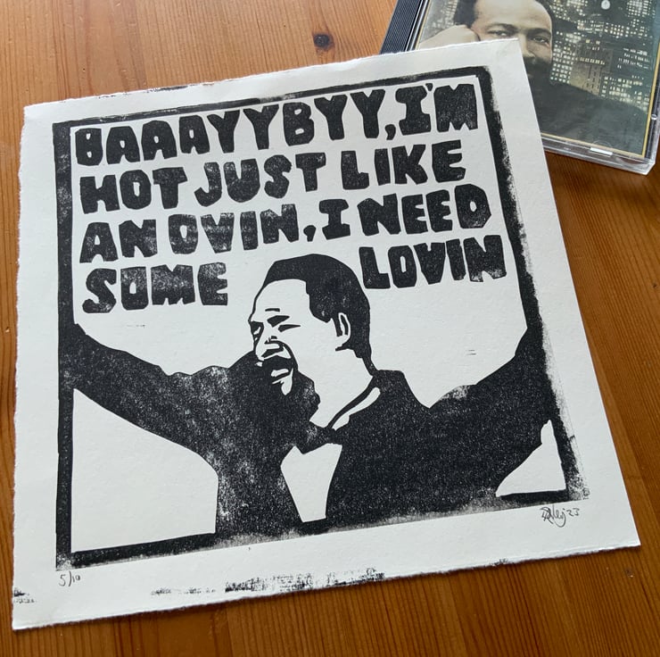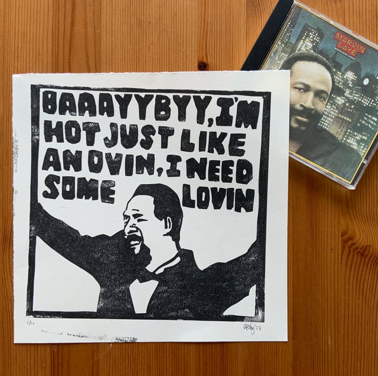 I love Marvin, and I love how he sings ‘ovin’ in Sexual Healing, just to make it rhyme with ‘lovin’’. I had to make a print of it.