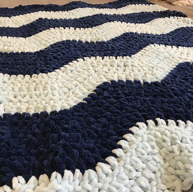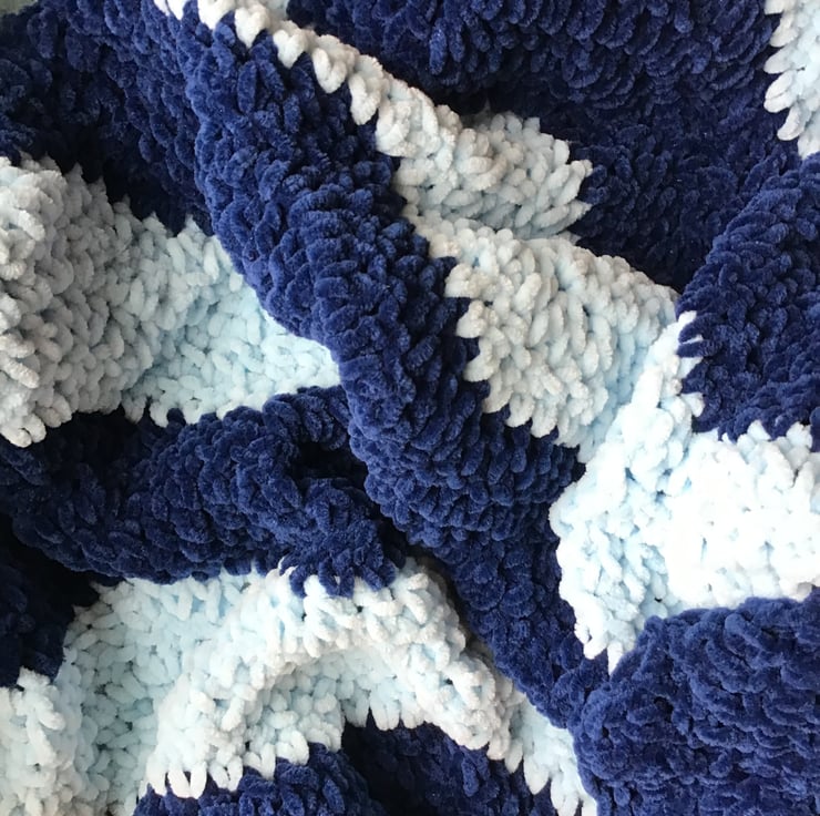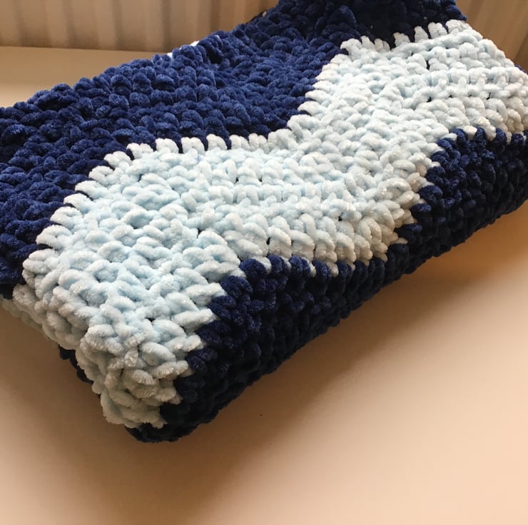Super squishy and soft crochet baby blanket handmade from ‘marshmallow’ yarn.