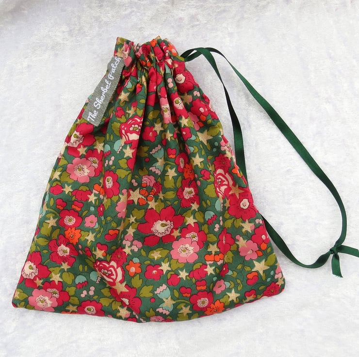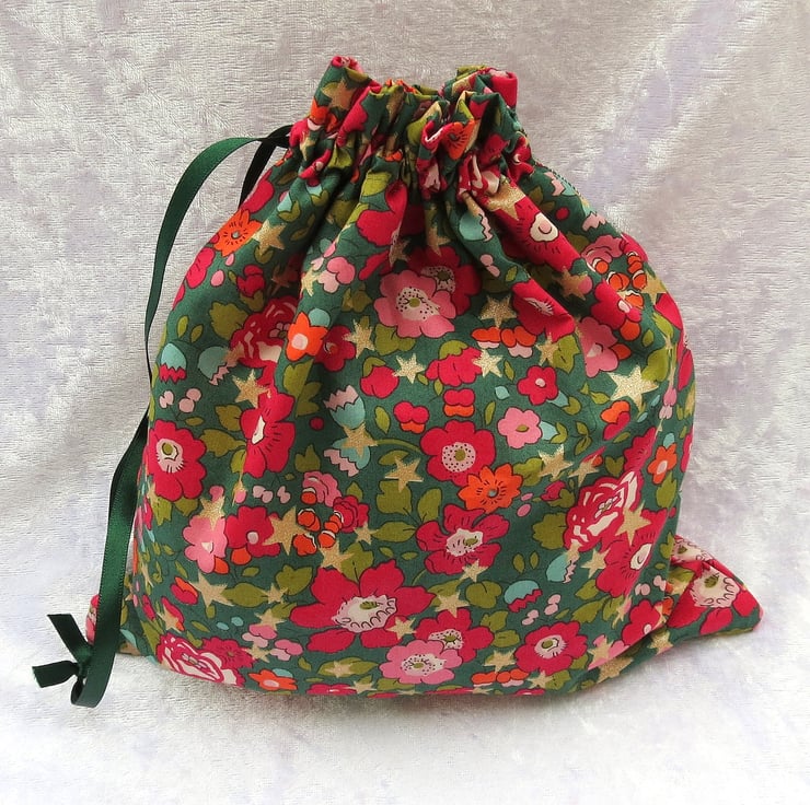 A lined drawstring bag, made from Liberty Tana Lawn.