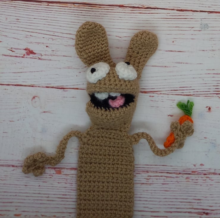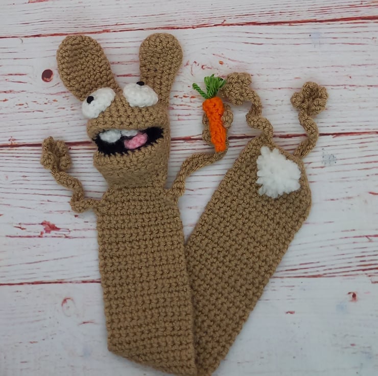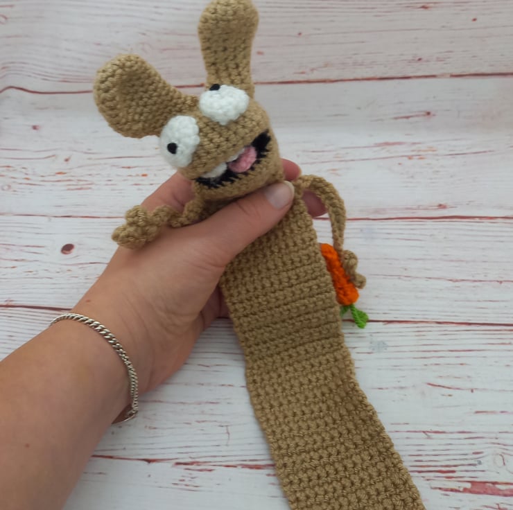 Carefully crocheted in acrylic yarns, Rupert the Ruptured Rabbit comes complete with his own carrot & cute fluffy tail... He loves a good read & can't wait to dive into the pages of a good book with you!!