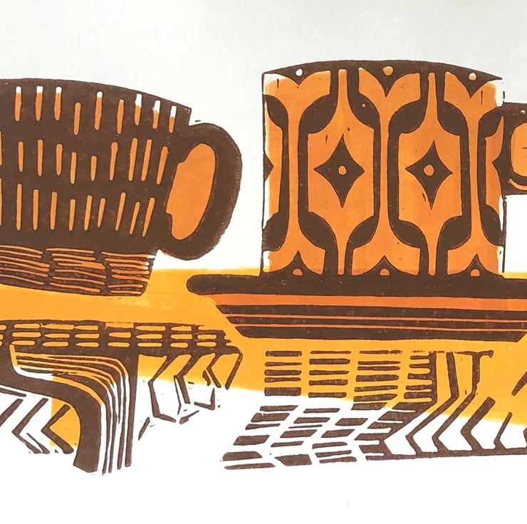 This is a listing for an original three colour handprinted linocut, with water based inks which I've mixed into orange, burnt orange and a chestnut brown.