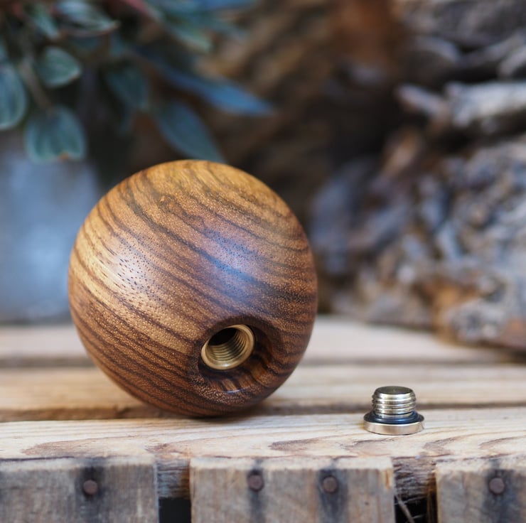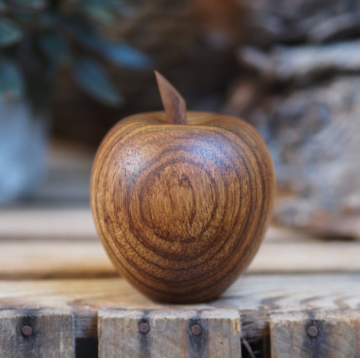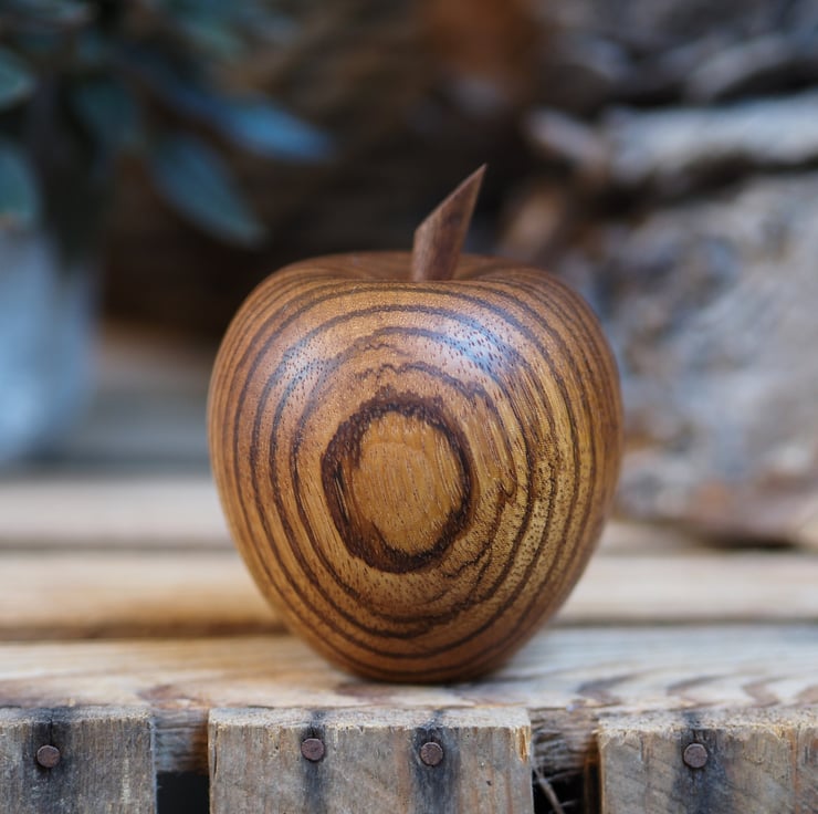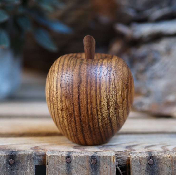 Your apple is crafted from Zebrano wood with a walnut stem.