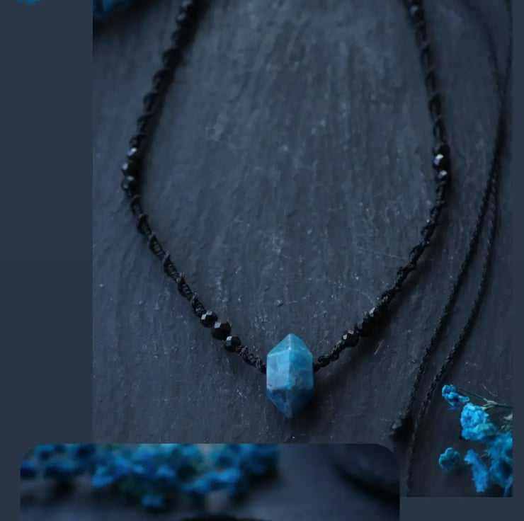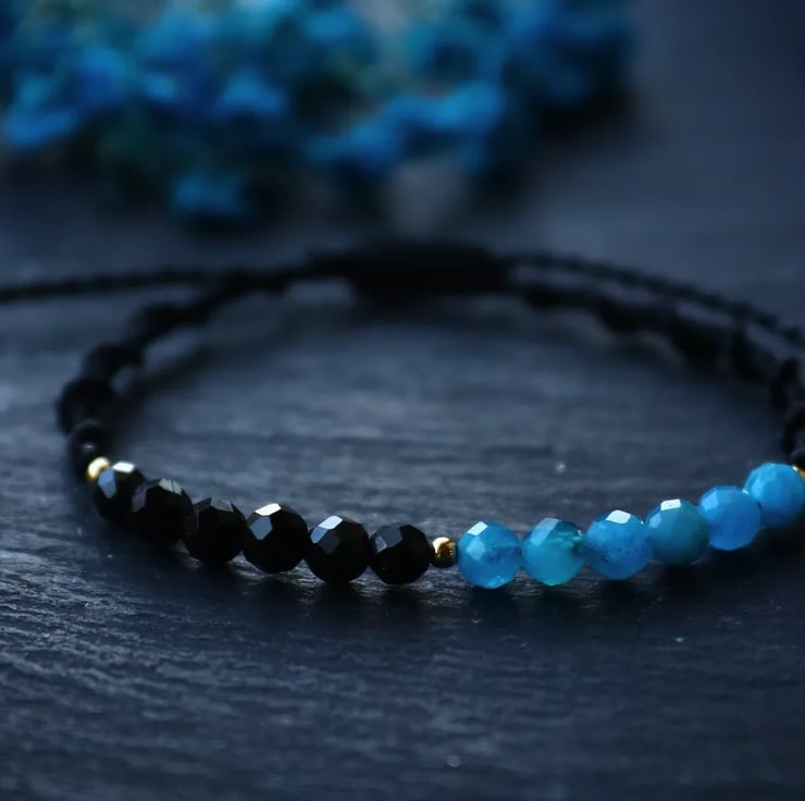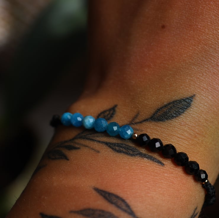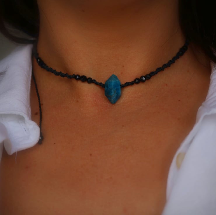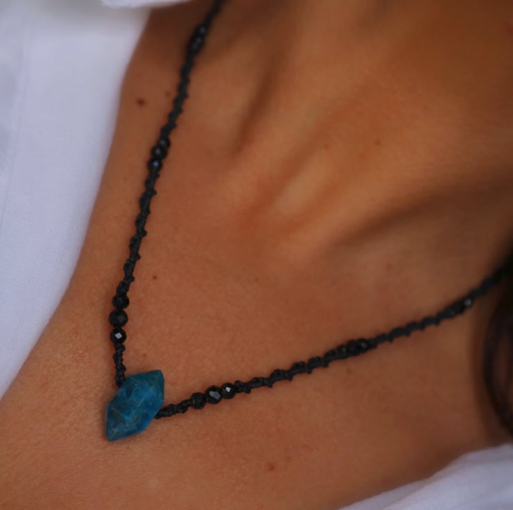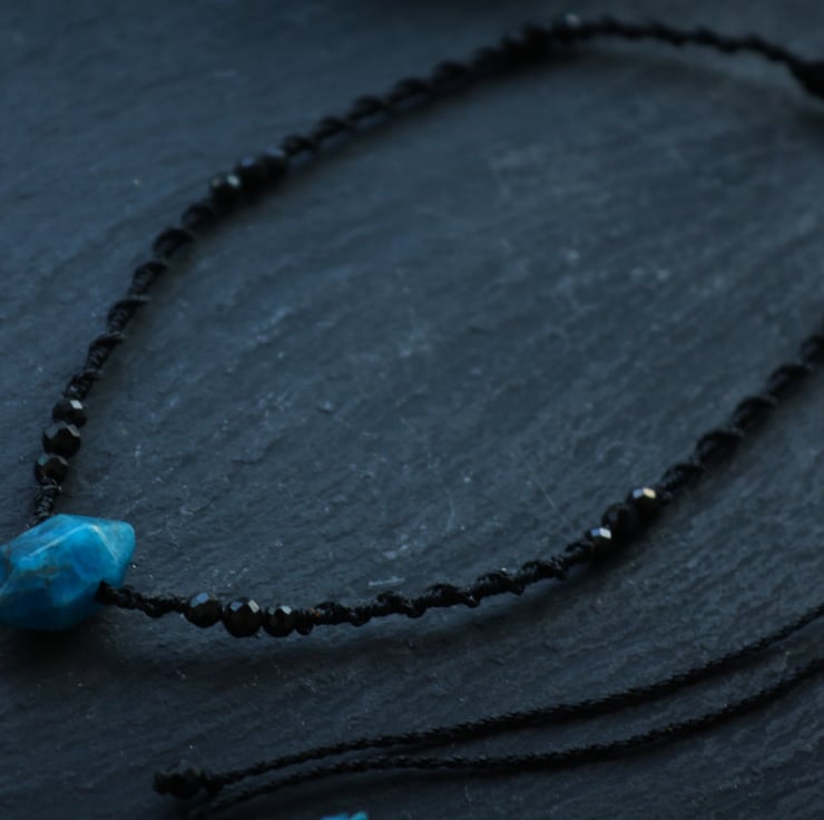 Women's adjustable set necklace and bracelet with natural stones Apatite and Tourmaline.