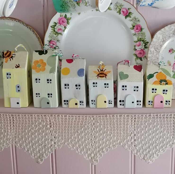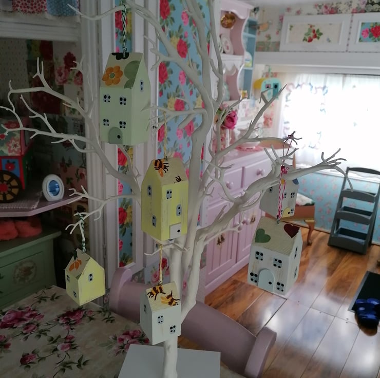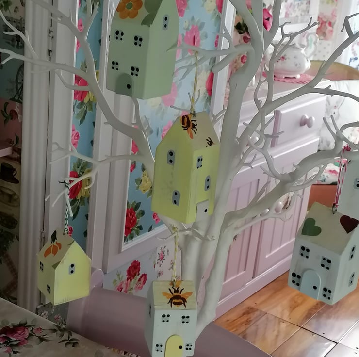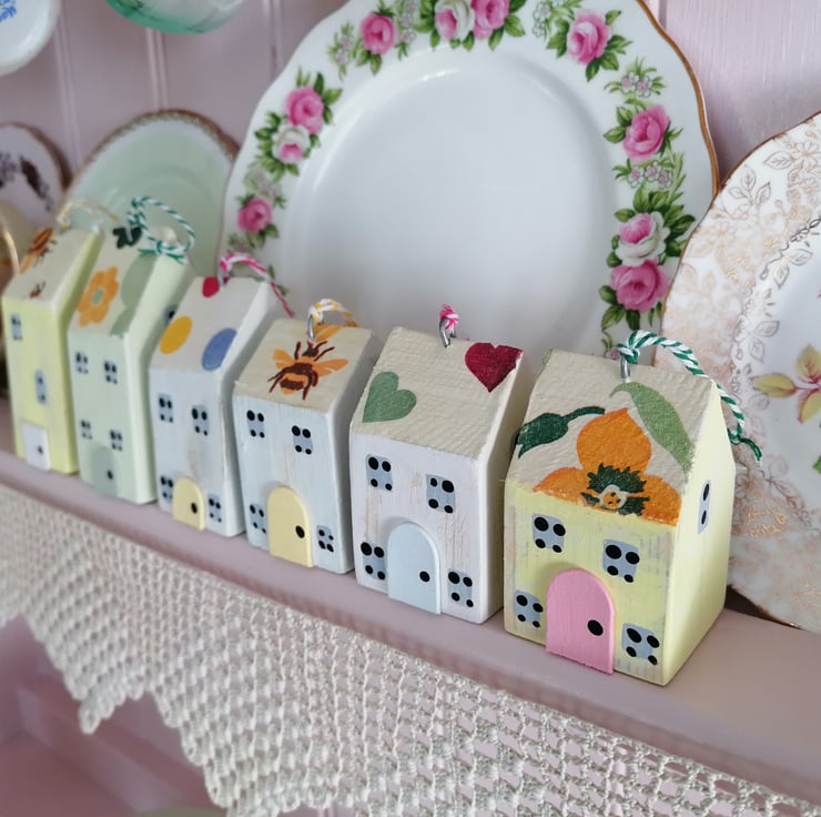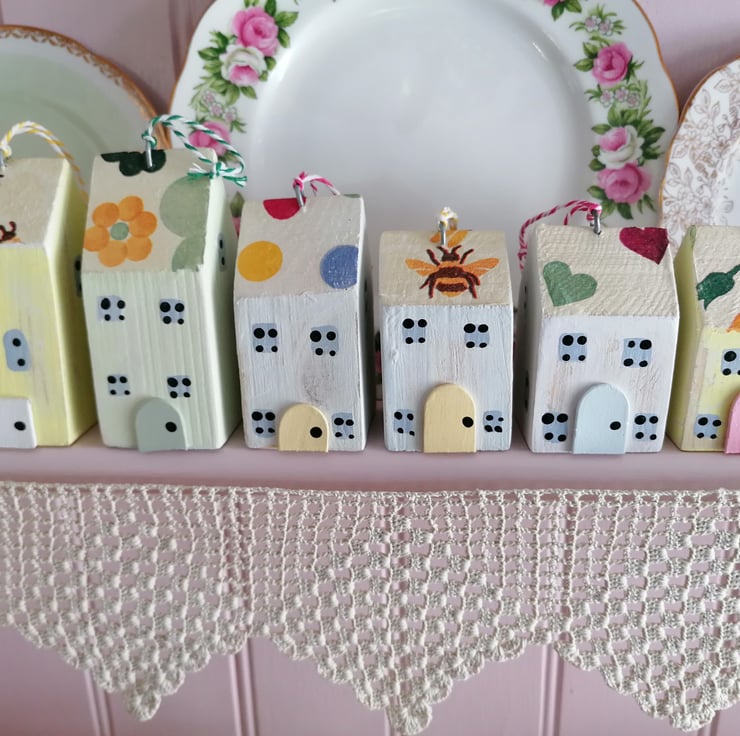Set of Six Wooden Hanging mini houses...
