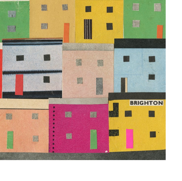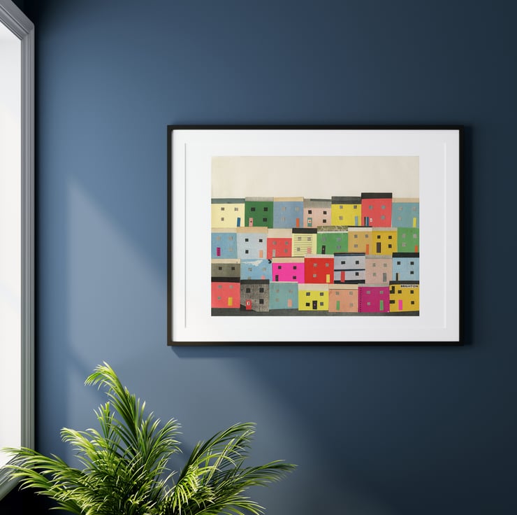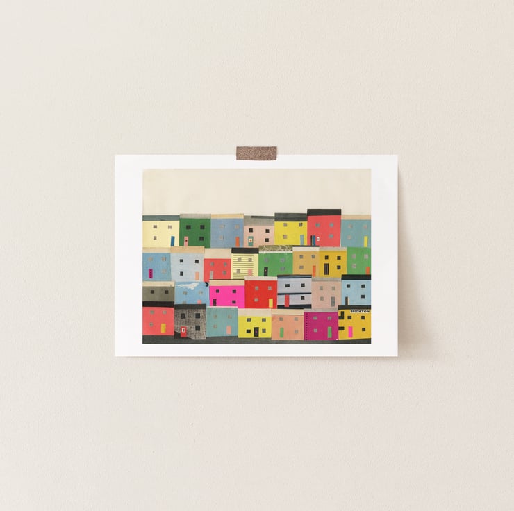 Brighton is such a vibrant and creative place to be. This particular piece is inspired by the tiny wonky streets of Hanover where each house is a different colour. I feel this evokes the happy friendly vibe in this wonderful corner of england.