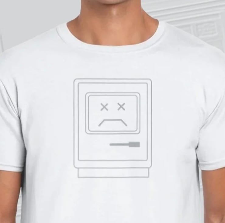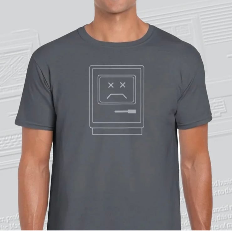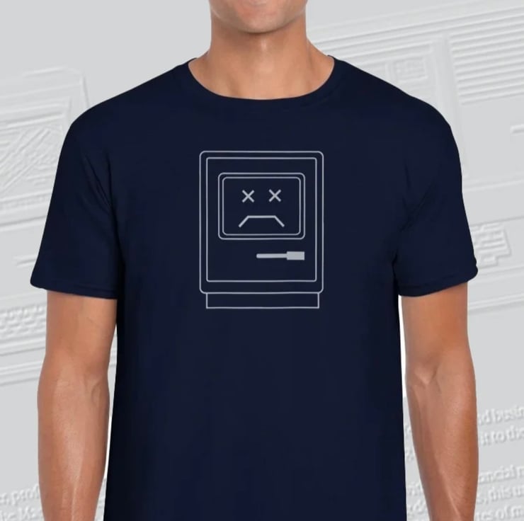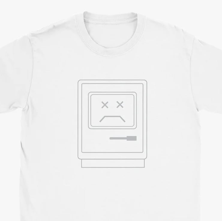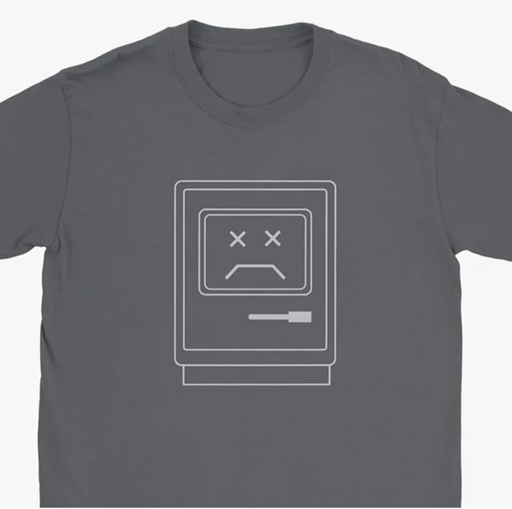 Our new Sad Mac Apple Mac computer tee is the perfect way to show your love for vintage tech. The tee features the icon used by the earliest Apple Macintosh computers to indicate a severe problem has prevented a successful startup. I don't know about you, but I get that feeling every Monday morning!