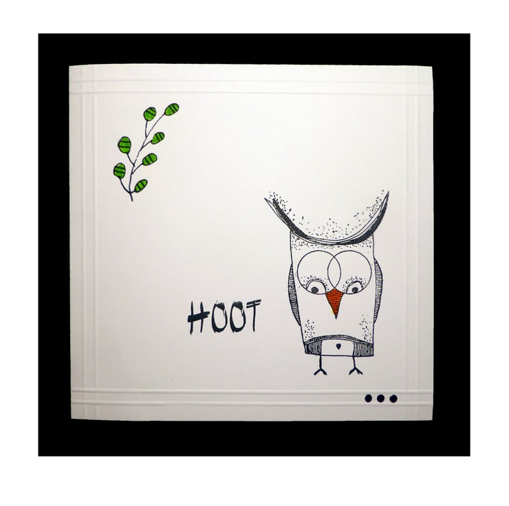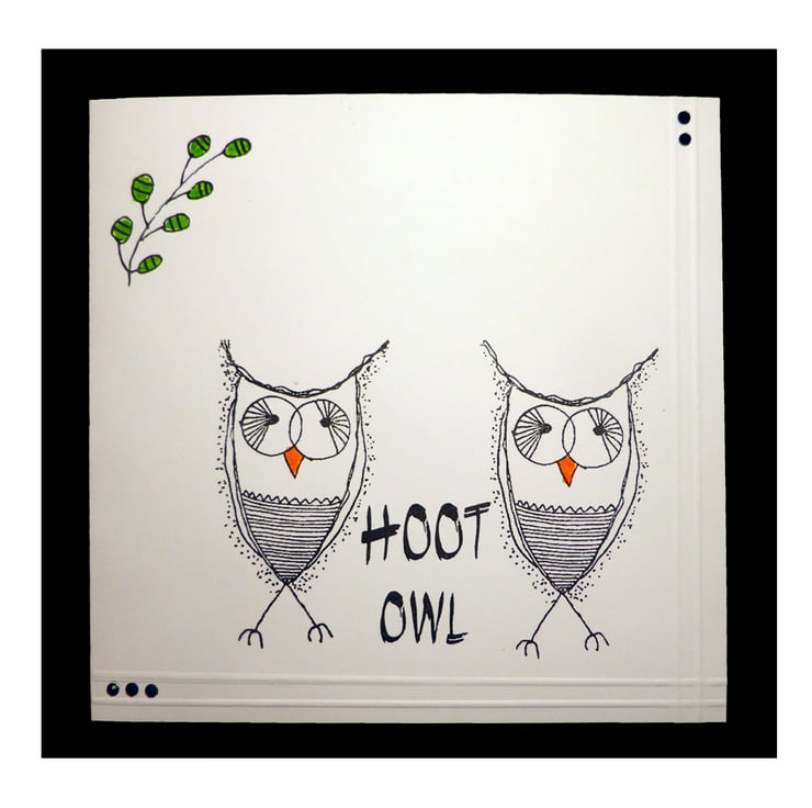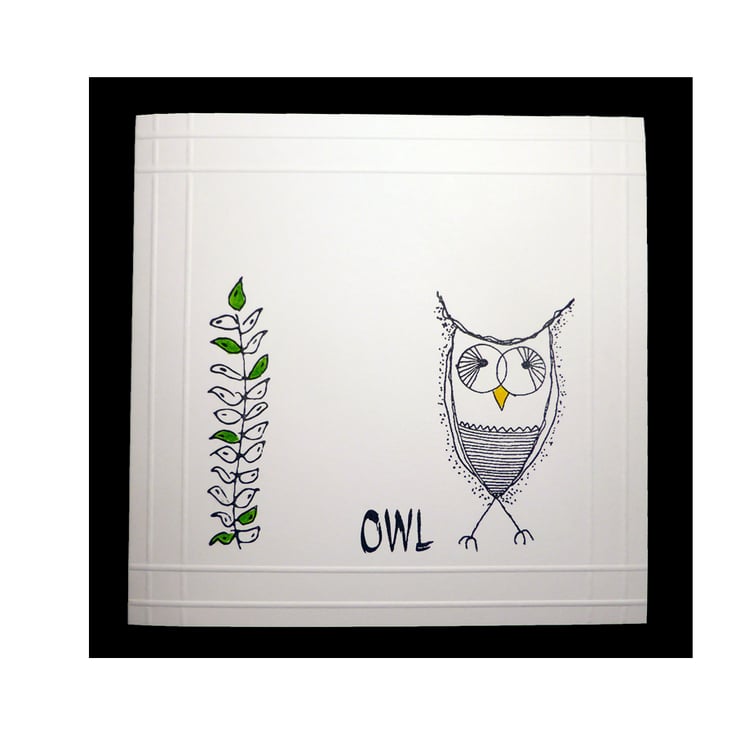 Clean and simple 6" square side fold greetings card featuring stamped single or pair of owls.