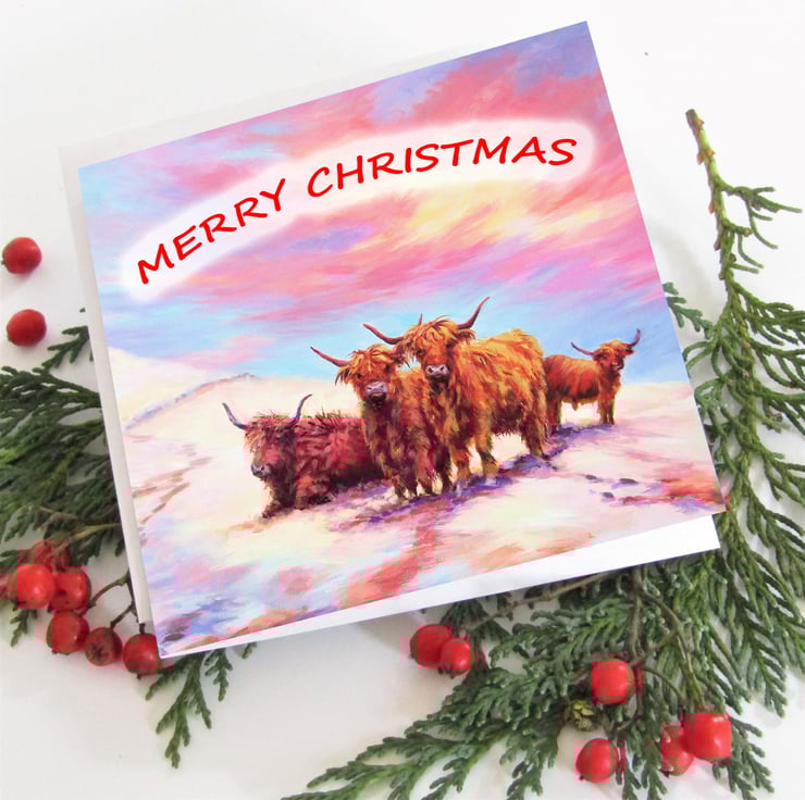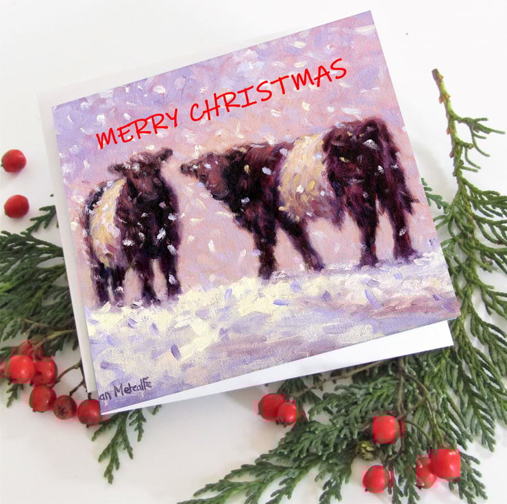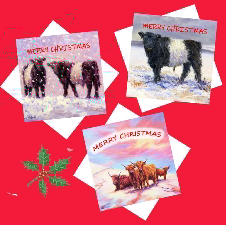 I have hand picked my most popular Belted Galloway paintings and a lovely snowy Highland cow one, to create a lovely set of Christmas cards just for you.