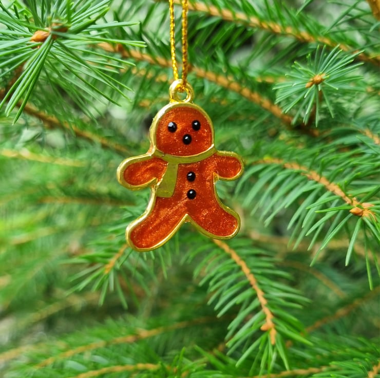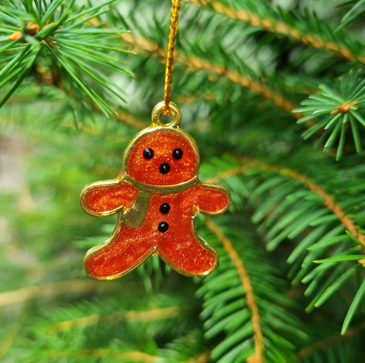 Set of 6 handmade mini Gingerbread Man Christmas tree decorations with rhinestone accents. Approximate size of snowman 28mmx28mm.