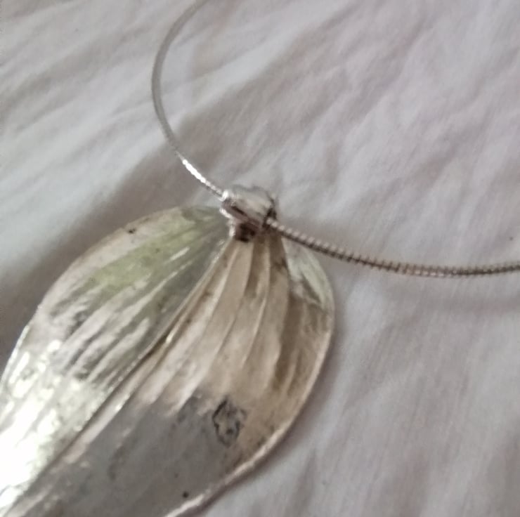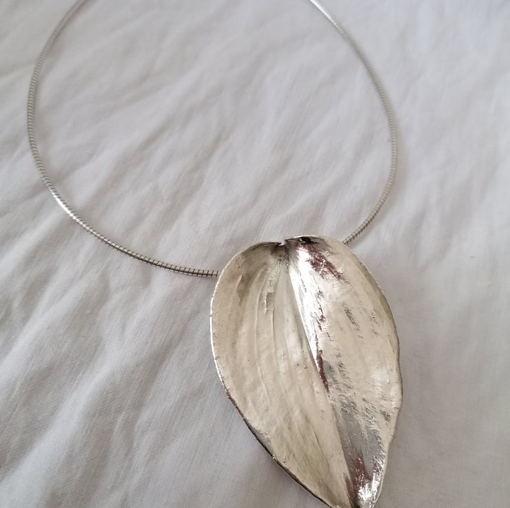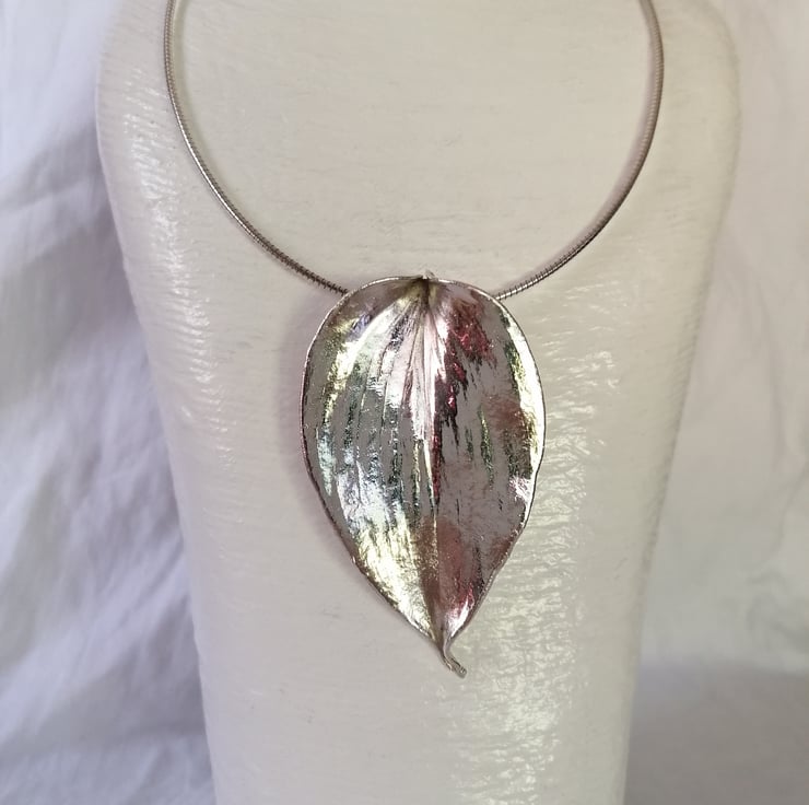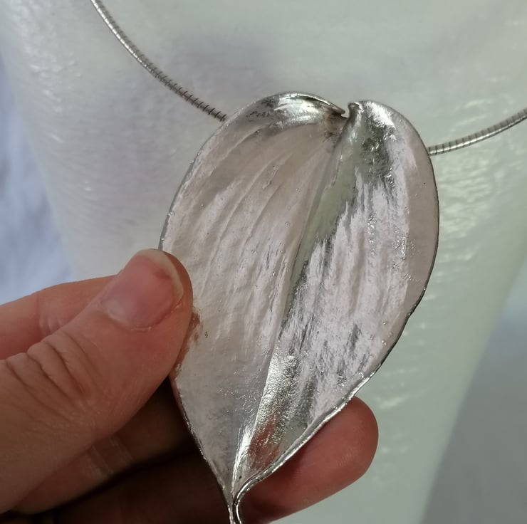 This Hosta leaf measures approximately 8.5cm high and is supplied on a sterling silver 18" silver necklace.