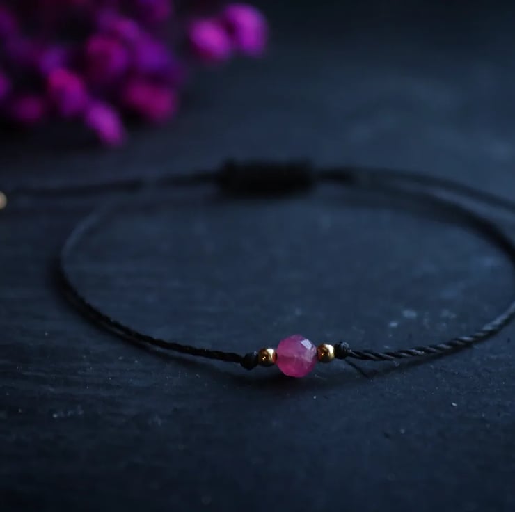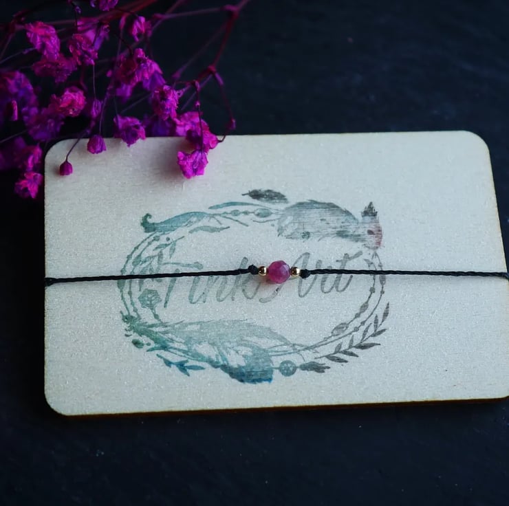 Pink tourmaline adjustable bracelet with 14k gold plated beads