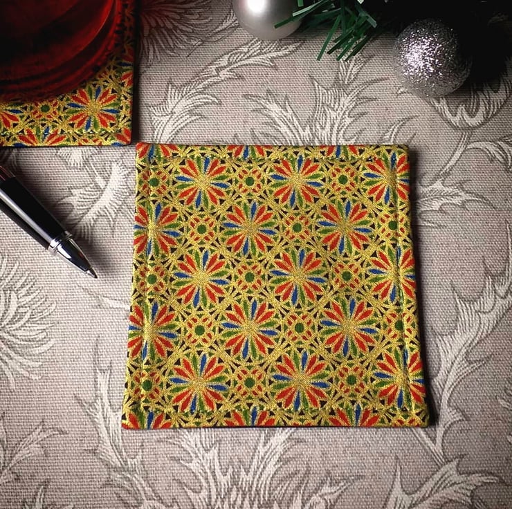 Set of 2 printed cotton coasters handmade in Glasgow, Scotland