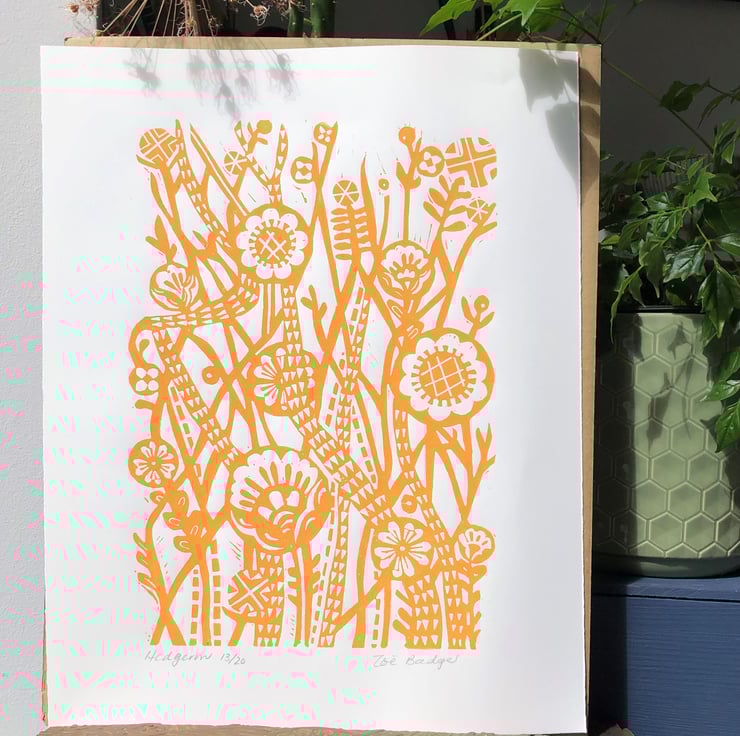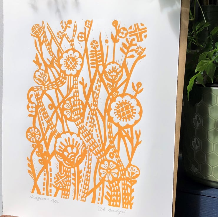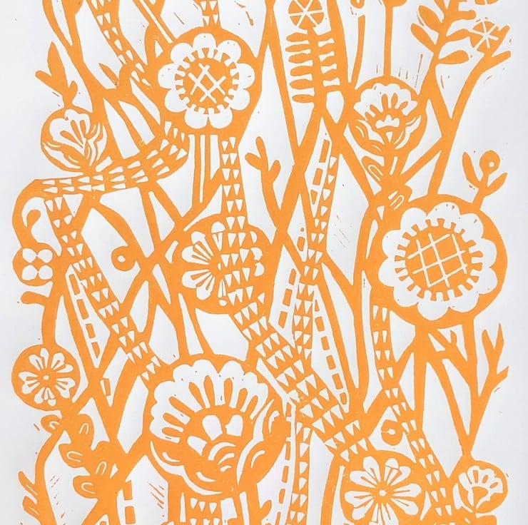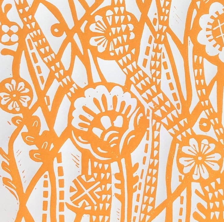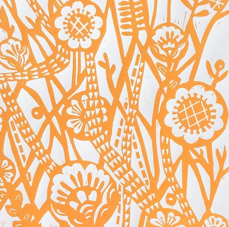 This is a listing for an original single colour handprinted linocut, with water based ink which I've mixed into an Orange colour.