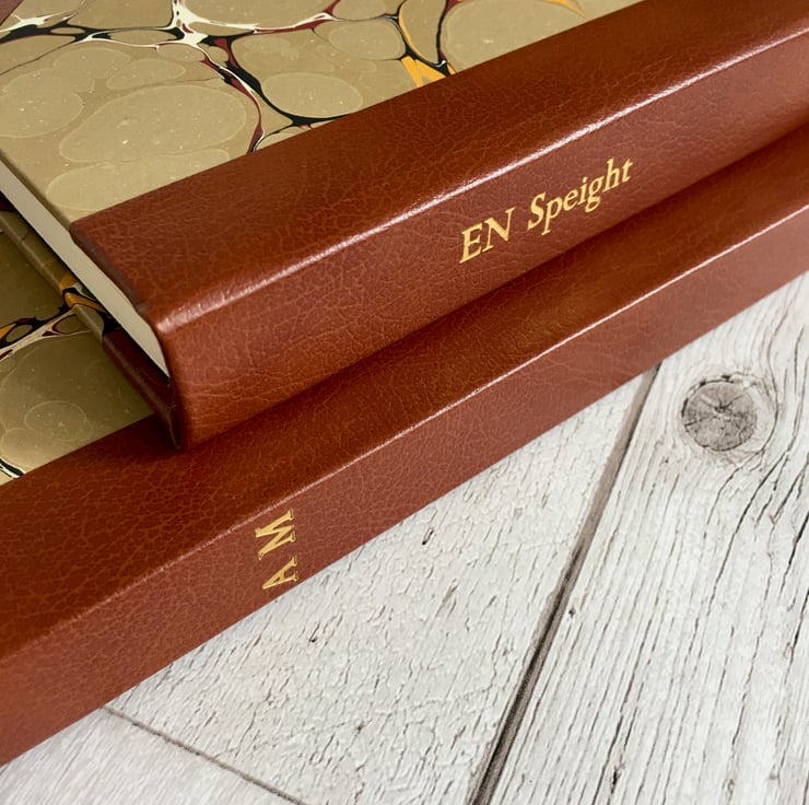 Option to personalise with up to 12 characters embossed in gold on the spine. Up to 2 characters will be embossed across the spine. Longer personalisation will be embossed down the spine. If no personalisation is requested, your book will come with a plain spine.