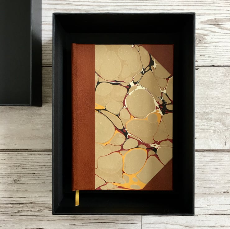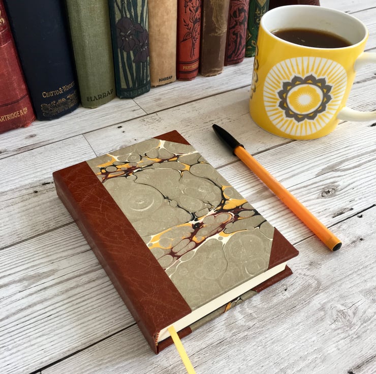 Bookbinding is a centuries-old art. Even today we make handcrafted books using the same tried-and-true techniques. When we think of old books our minds often turn to marble and leather covers. I wanted to give people the opportunity to have their own personalised marble & leather effect journal. Perfect for writers, note-takers, and doodlers, and for holding the past in your hands.