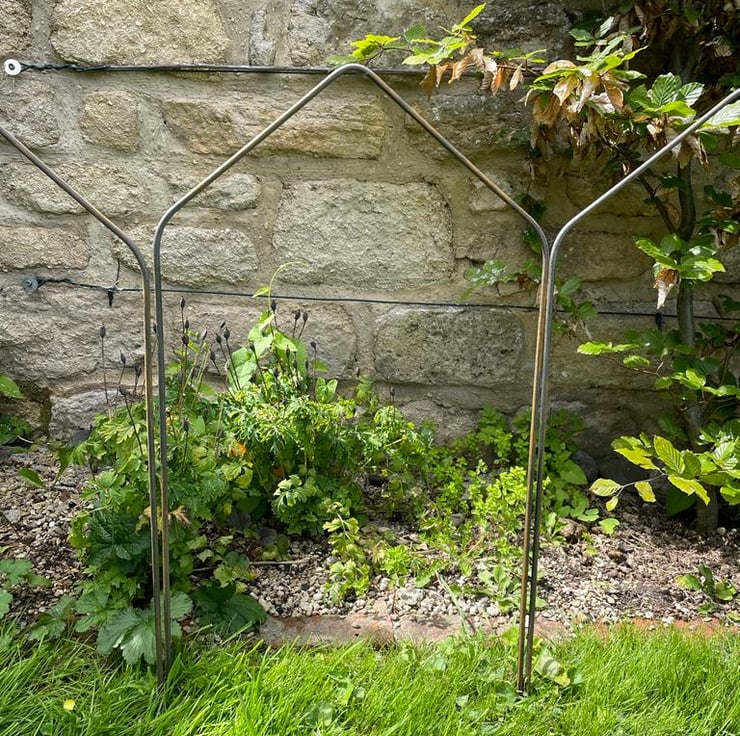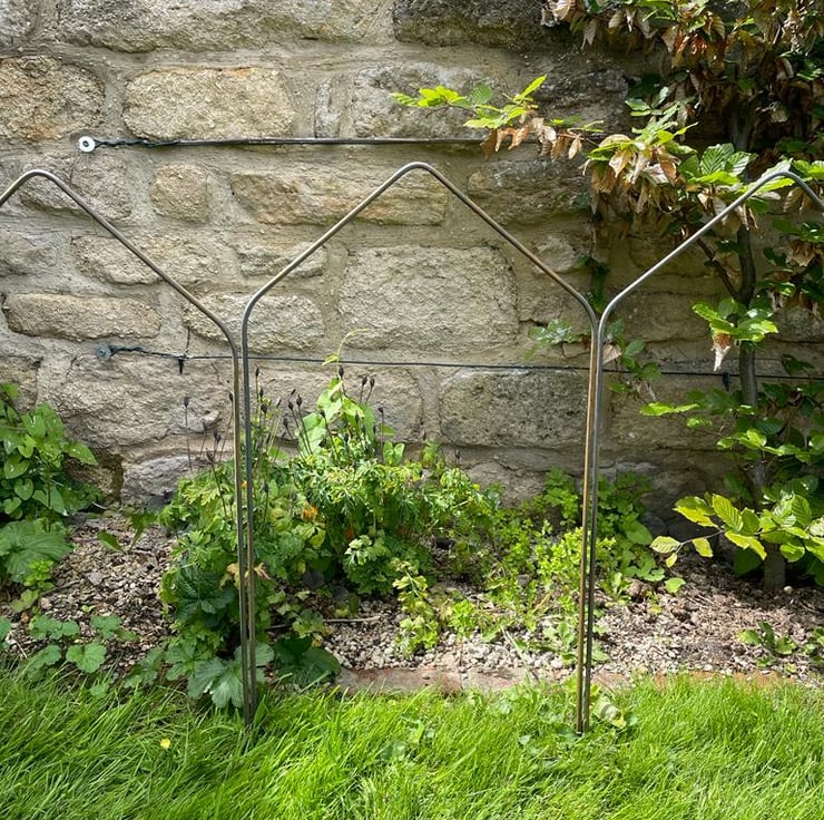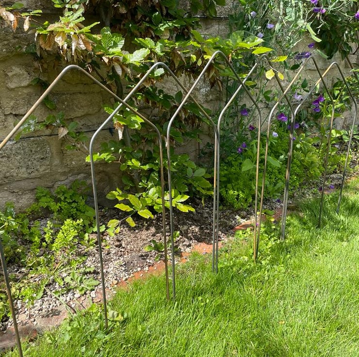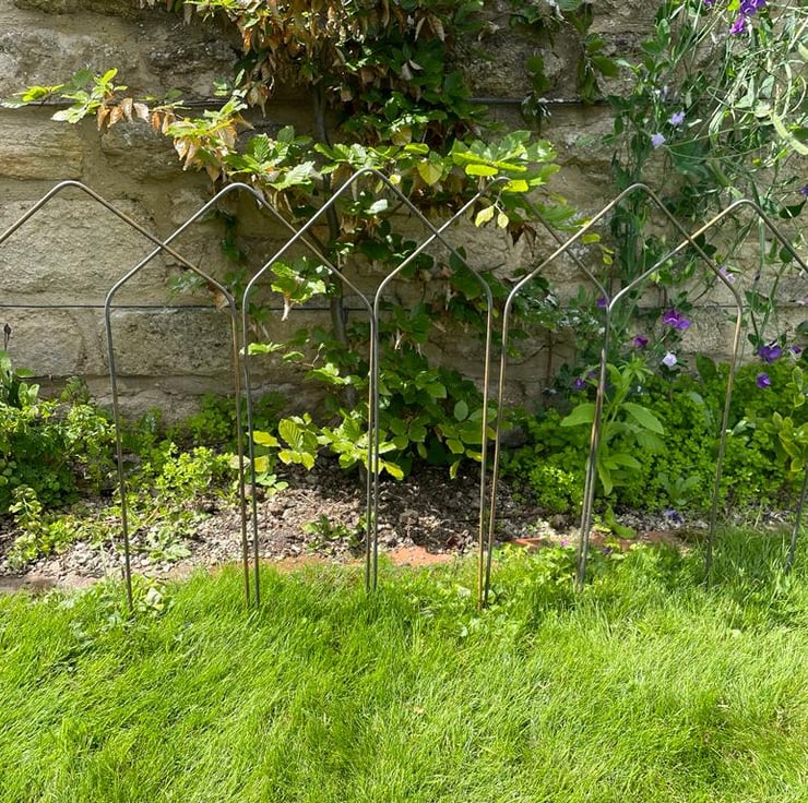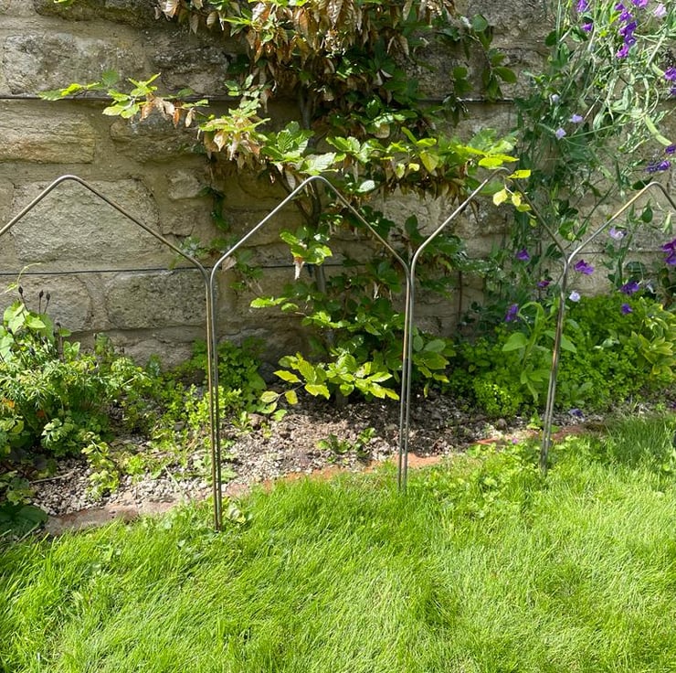 Anyone who loves gardening knows the pure pleasure of finally adding that longed for plant to the garden, and the pure horror of discovering a furry member of the family has chosen to dig/toilet/roll in that very same spot! Quickly we discovered we needed a simple and aesthetically pleasing way of preventing these situations and we developed this simple system of border edgings as a result. Easy to install and move making them a go to garden accessory that works hard and looks great. They are so versatile I even used some to create support for netting over the veg patch!